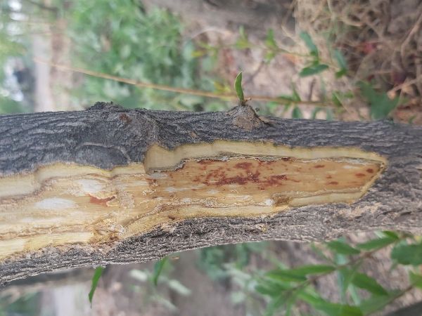 frass is mainly found behind the sapwood