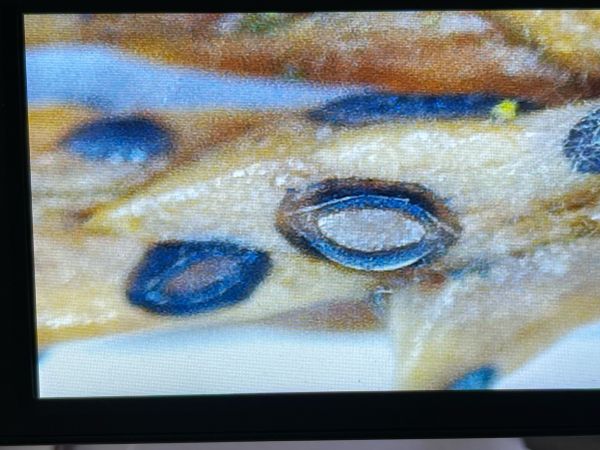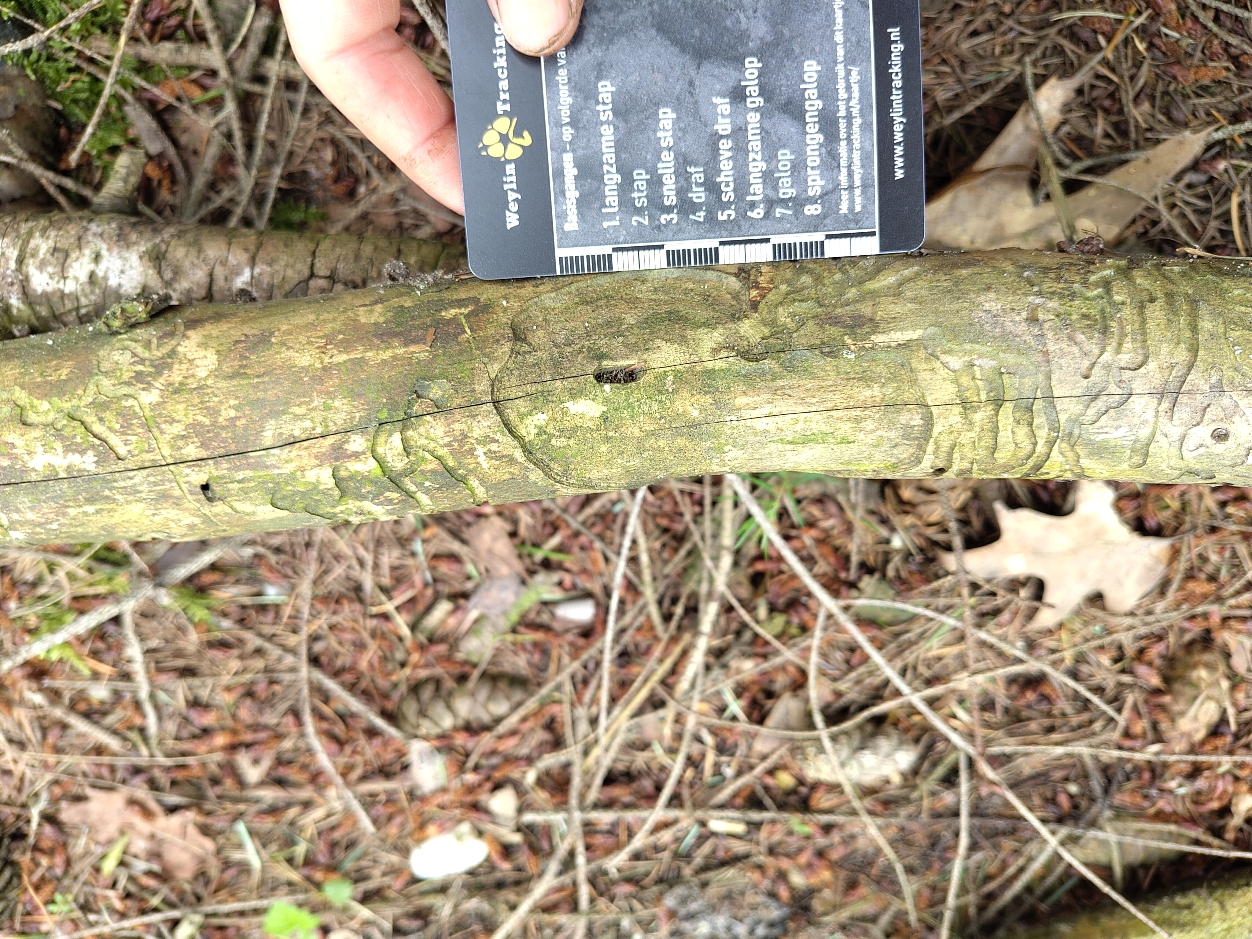 A short larva tunnel goes to a excavated large round with sharp edges. Clearly sunken into the wood. In the middle is a hole about 1 cm wide. Occurances found on pine and Norway spruce. Often together with callidium violaceum. Found very often, but less often then c. Violaceum.