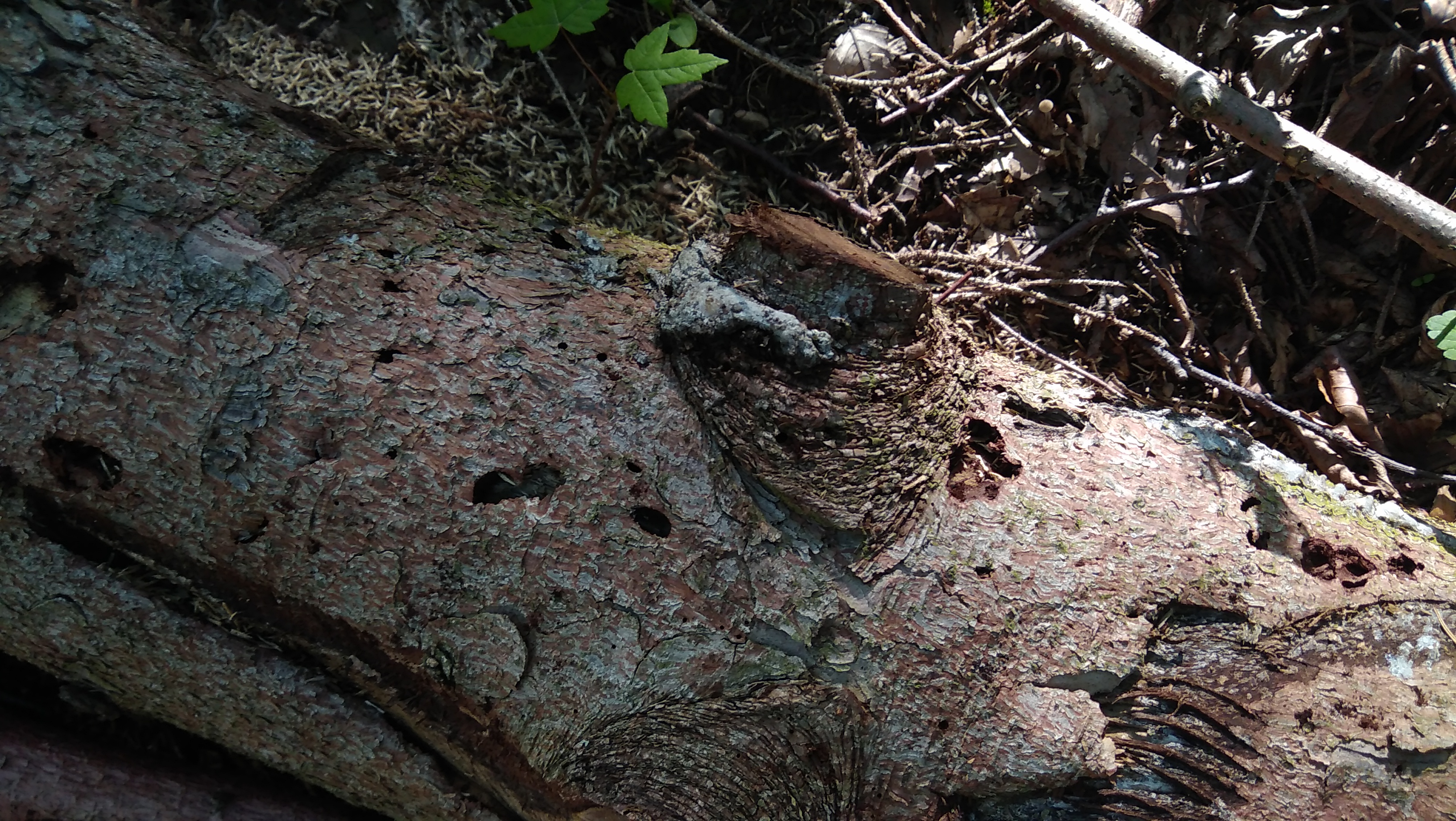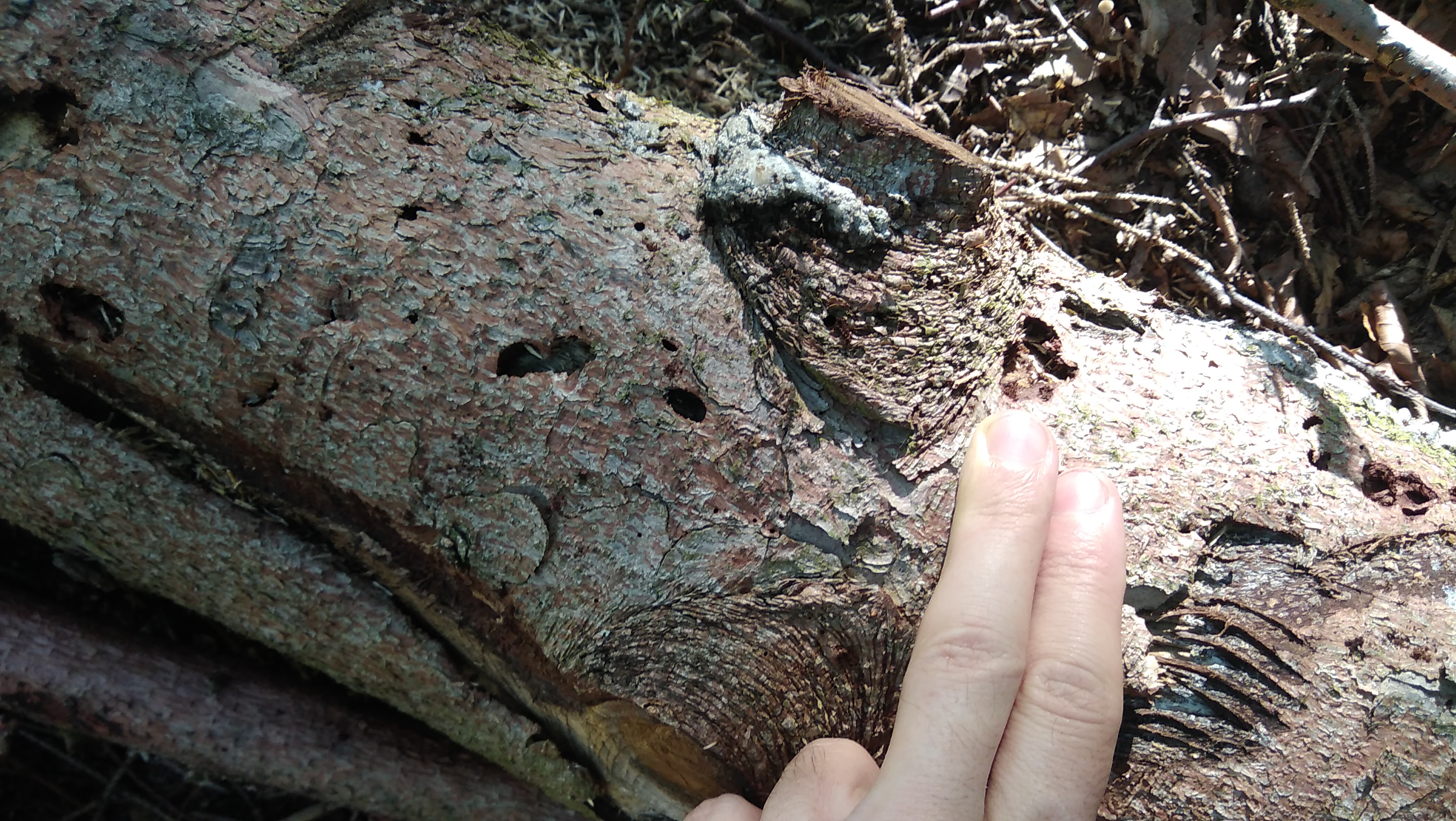 na fotografii sa jedná o kmeň stromu s malým priemerom, asi úplná špička stromu v rúbnom veku.