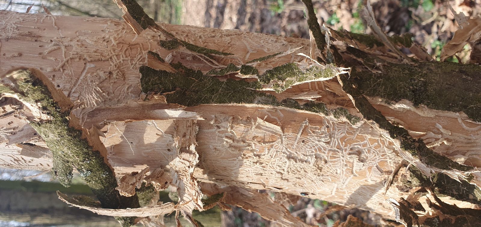 Thank you for your request. This is heavy infestation of an ash tree by Hylesinus varius (= fraxini). More about this pest here: https://www.forestpests.eu/pest/ash-bark-beetle. Wish best regards MZ.