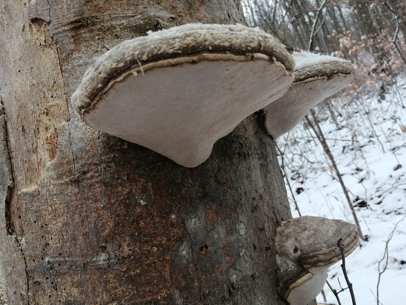 Dobrý deň pán "kolega", netrafili ste sa ani v jednom, drevina je buk, huba ja práchnovec kopytovitý (Fomes fomentarius), prajem pekný deň s pozdravom Roman Leontovyč