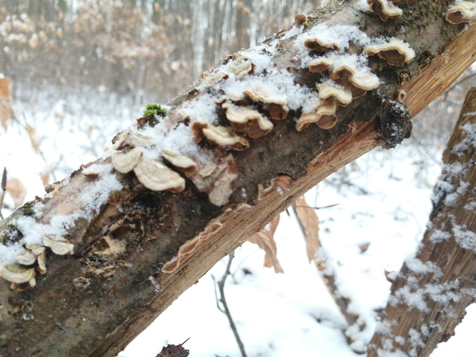 Dobrý deň, podľa fotografií sa jedná o trúdnikovca chlpatého (Trametes hirsuta). Uvedený druh rastie tak na živom, ako aj odumretom dreve listnatých drevín, najmä bukov, s pozdrvom Roman Leontovyč