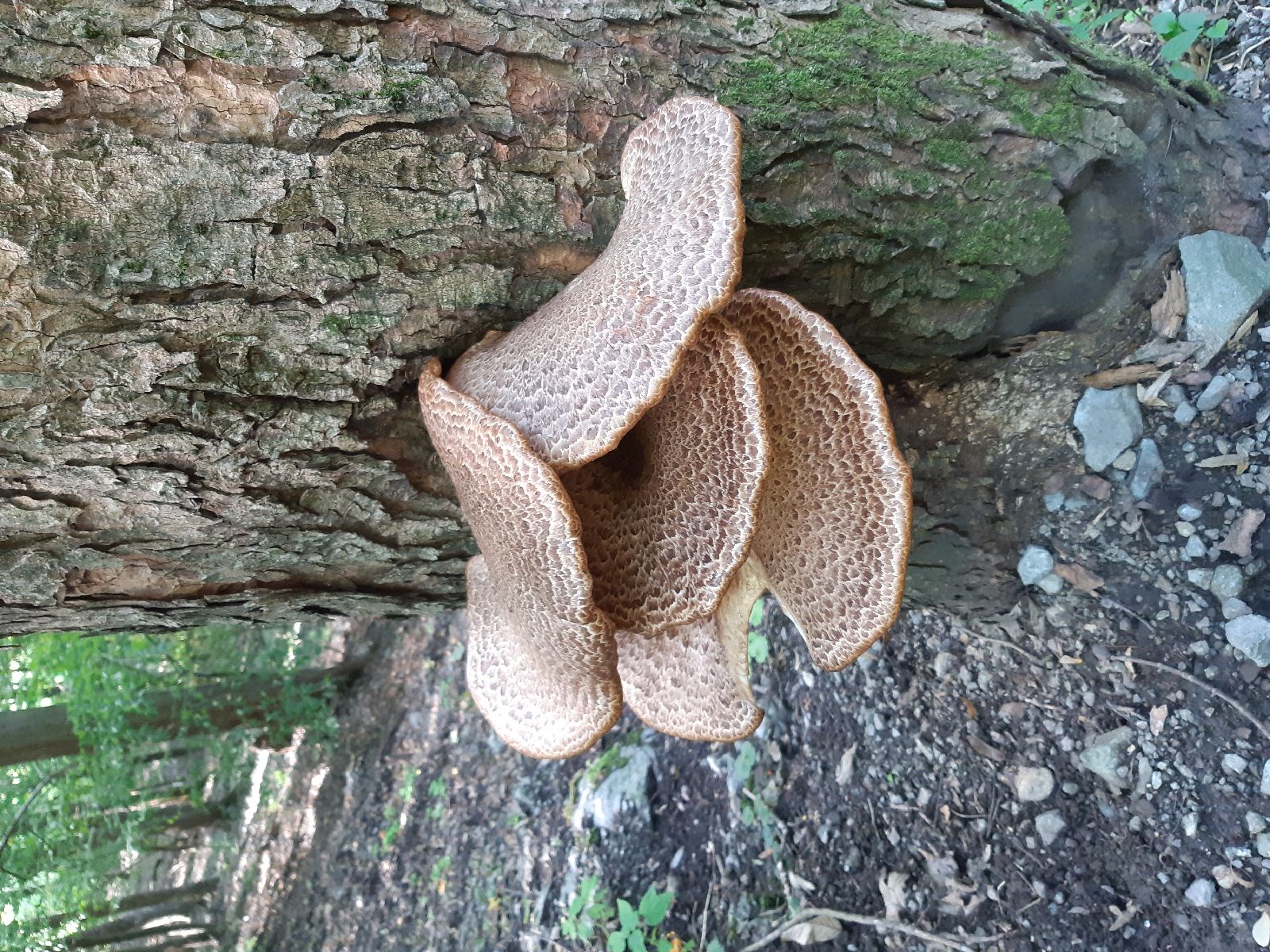 podľa fotografie sa jedná o Šupinovku šupinatú. Plodnice sú jednoročné, rastú v lete a v jeseni v trsoch, veľmi často na odumretých vetvách a kmeňoch, avšak predovšetkým pri päte kmeňa živých stromov, často zdanlivo na zemi. Plodnice sa niekedy vytvoria aj na sklade dreva na guľatine. Klobúk je klenutý, s hrboľom, na žltkastom podklade pokrytý výraznými hrdzavými šupinkami. Hlúbik je valcovitý, naspodku stenčený a suchý so šupinami. Mycélium spôsobuje pomalé, avšak deštruktívne tlenie napadnutého dreva, ktoré dostáva bielu farbu. Šíri sa najmä v beli. Infekcia preniká do stromu koreňmi, alebo poraneniami.