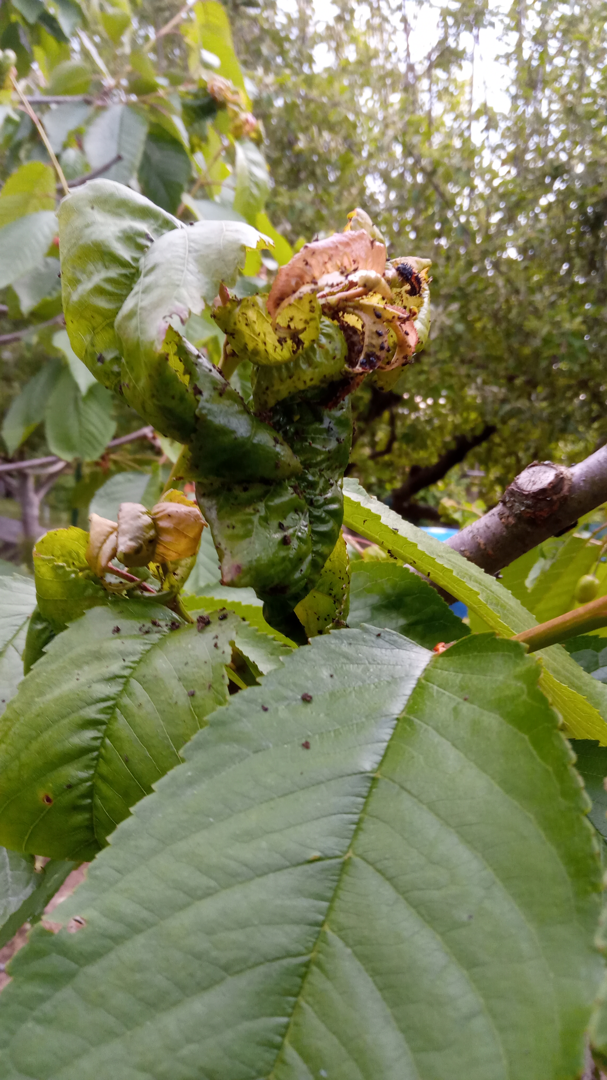 Dobrý deň, je to voška Myzus cerasi. Bežný druh vošiek na čerešni. Pôsobia na ňu bežne dostupné insekticídny prípravky (na vošky alebo savý hmyz, Karate Zeon, Sanyum Ultra, Mospilan s pod), vhodný druh prípravku vám poradia v najbližších záhradkárskych potrebách. Všetko dobré želá MZ.