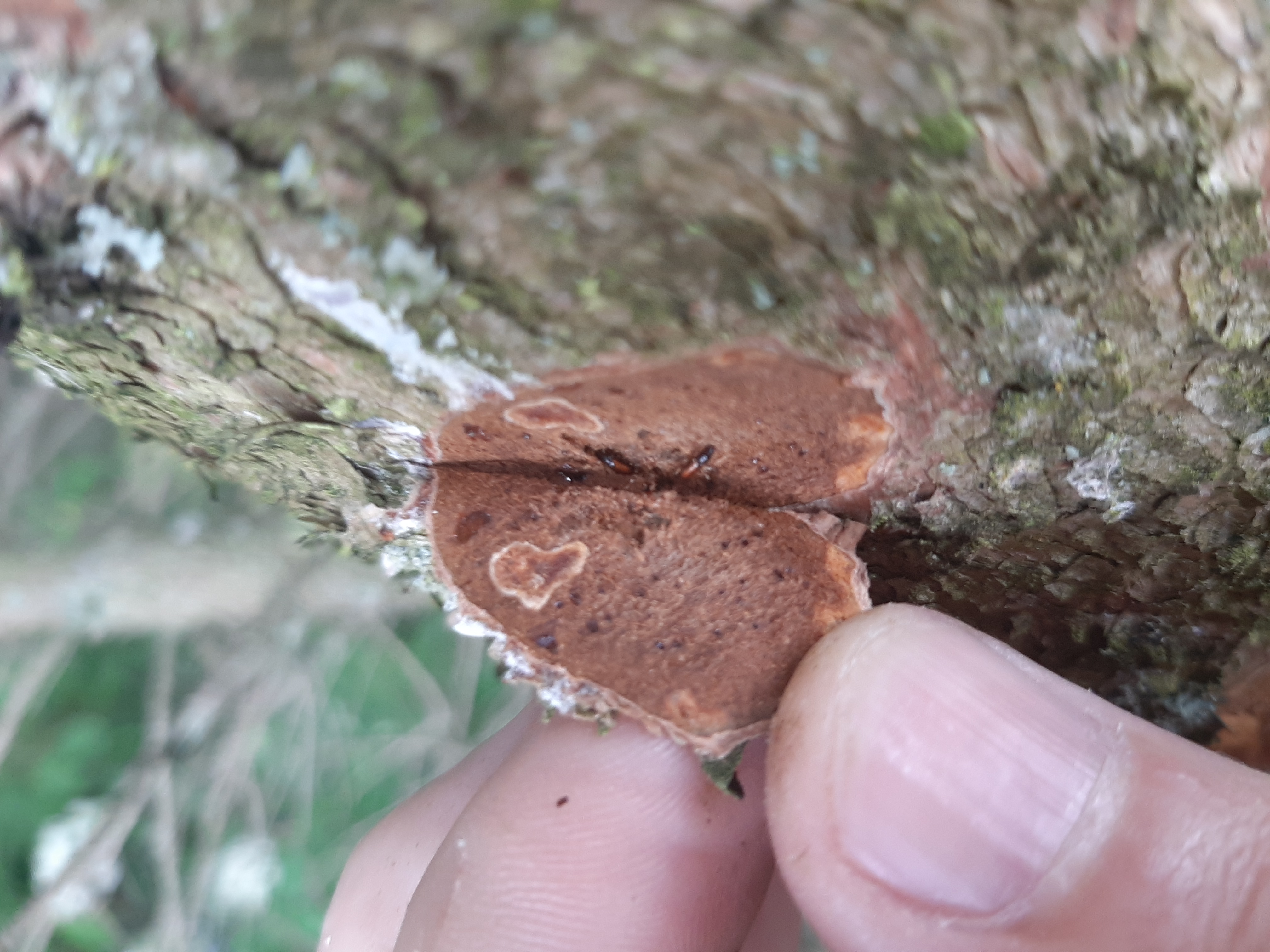 je to Fomitopsis pinicola, spôsobuje červenú hranolčekovito sa rozpadajúcu hnilobu. Bežne v lese videteľné. Teda nielen Heterobasidion spôsobuje červenú hnilobu. Opäť krásna fotka!