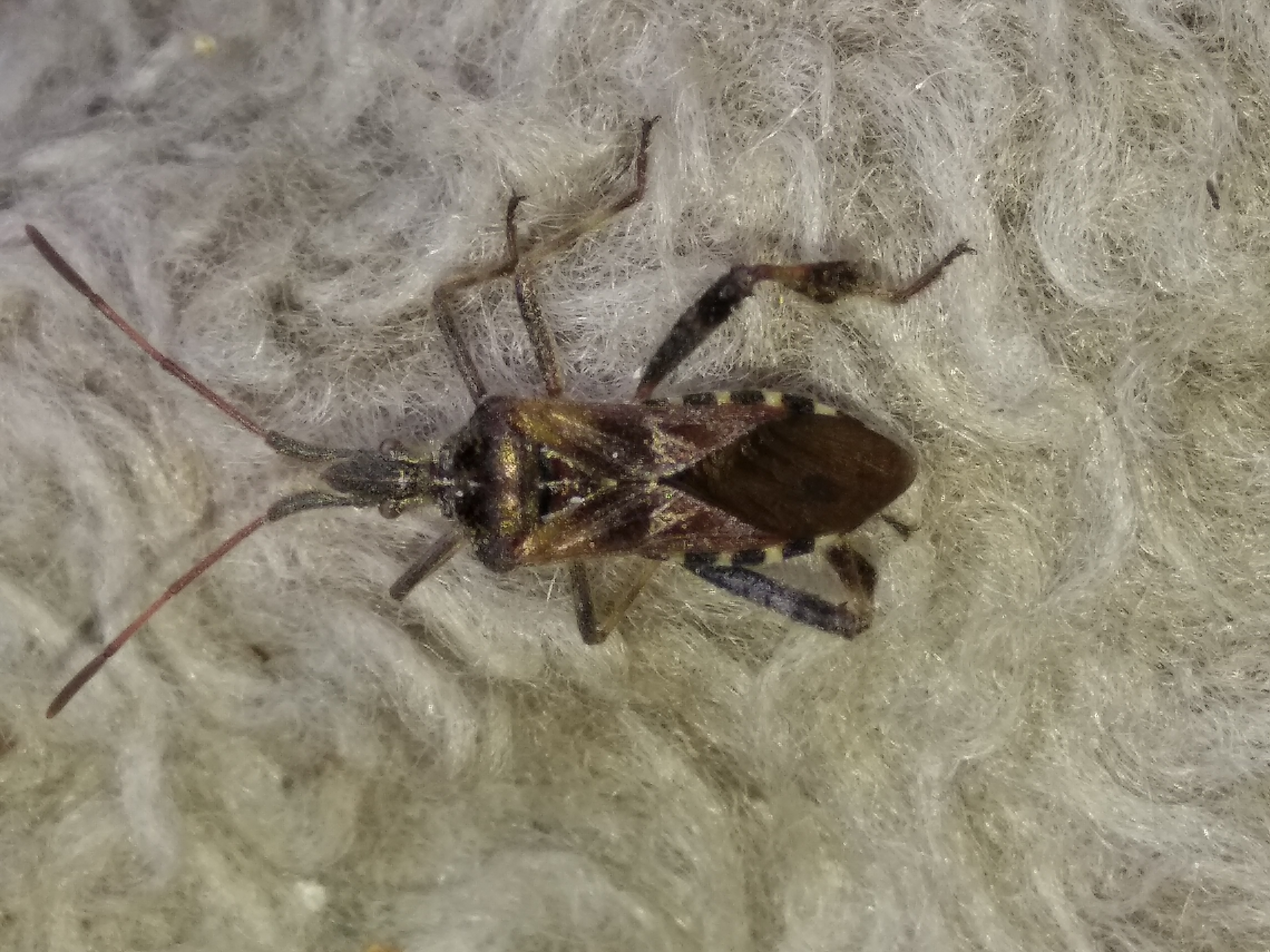 Dobrý deň, jedná sa o bzdochu, obrubnicu americkú. Živí sa šťavou ihličnatých drevín, prevažne ich nedozretých šišiek, čím im poškodzuje. Na jeseň sa zoskupujú a hľadajú miesto na prezimovanie, často aj v ľudských obydliach, v blízkosti stromov kde sa vyvíjali.