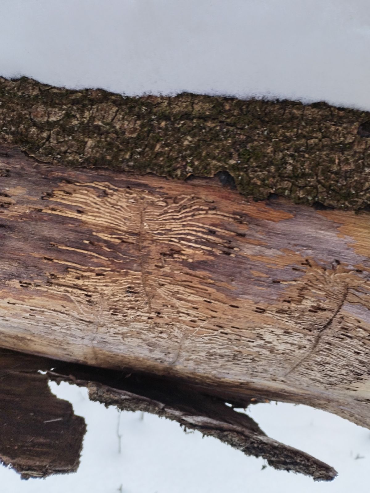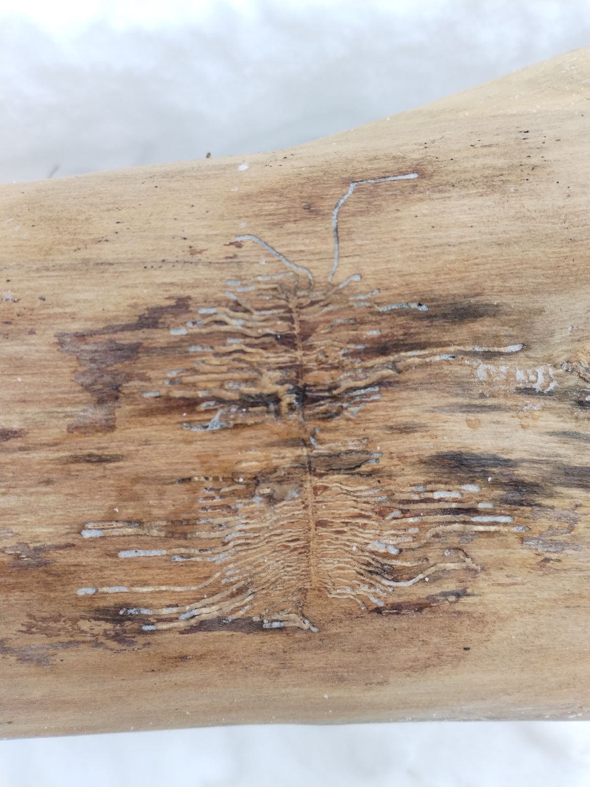 Hello,even though the galleries are old, I think it is Pityokteines vorontzowi. It is possible to confuse it with the species Pityophthorus pityographus, which has longer maternal tunnels and density larval tunnels.Best regardsJozef Vakula