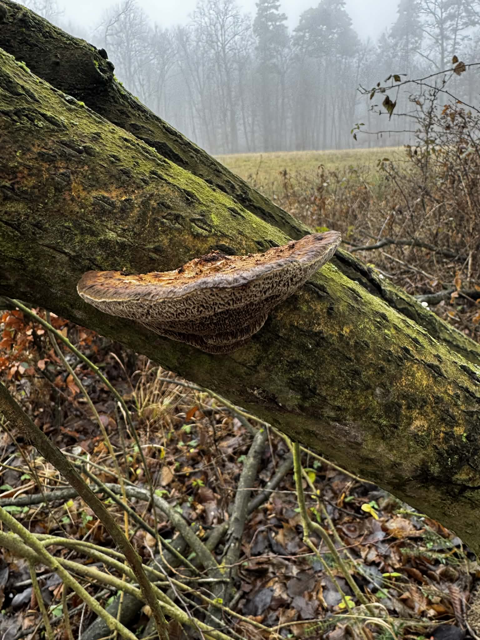ano, podľa foto sa pravdepodobne jedná o Trúdnikovec chlpaty, rastie prevažne na listnatých drevinách,ale môže sa ojedinele vyskytovať aj na ihličnatých drevinách.