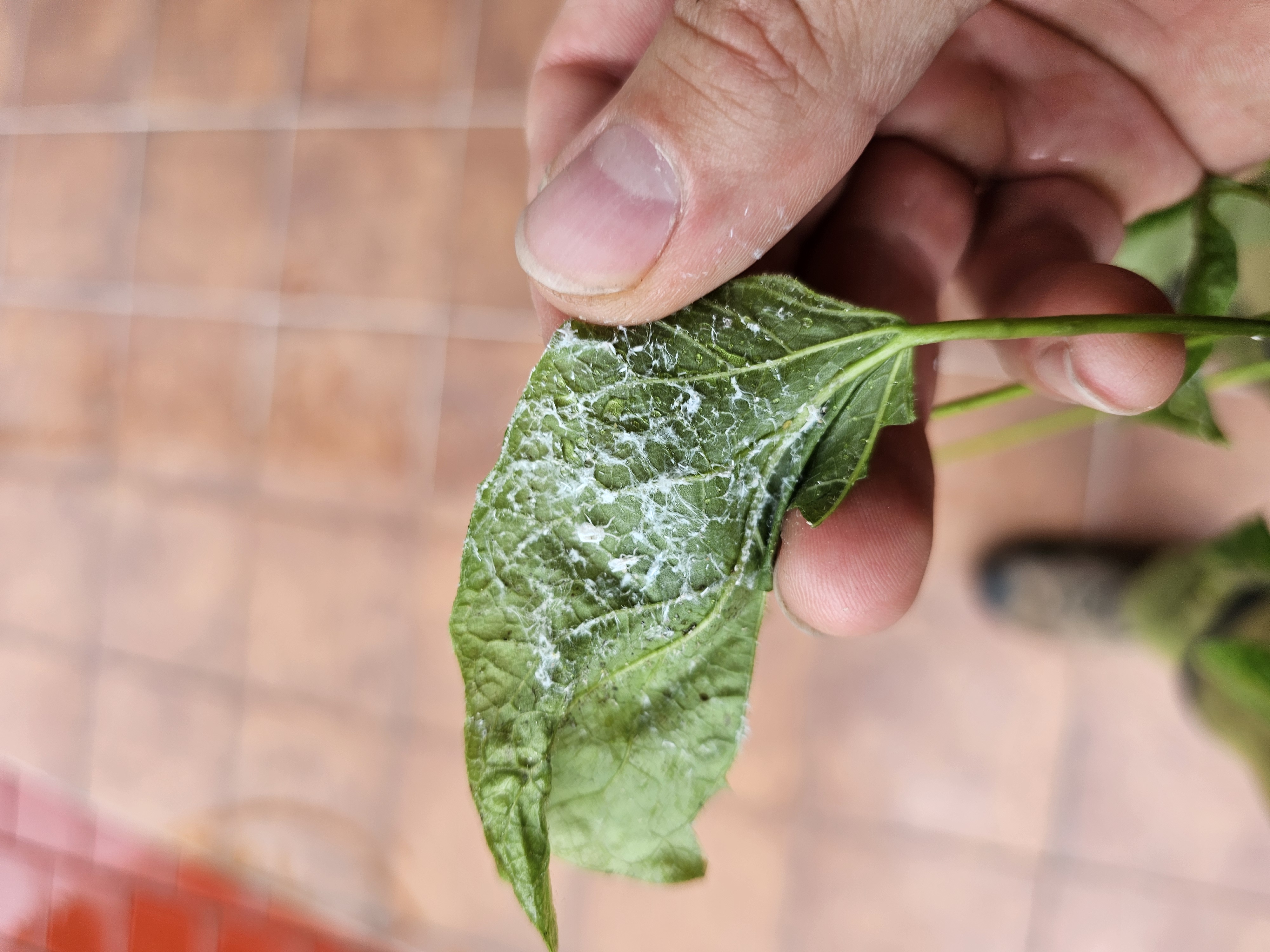 Biely povlak na liste Catalpa bignonioides ´Nana´ a tiež to chytil Prunus lusitanica ´Angustifolia´ môj dojem, že to može byť Pseudaulacapsis pentagona.