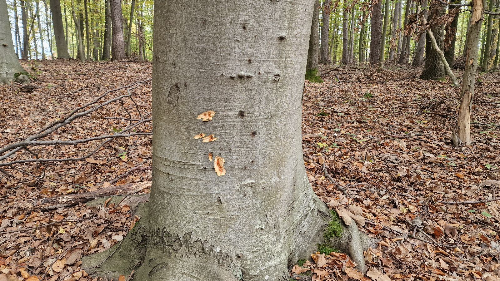Dobrý deň. Sú to staré závrtové otvory po lykožrútovi bukovom, cez ktoré vniká infekcia spôsobujúca ďalšie poškodenie pod kôrou. S pozdravom JG
