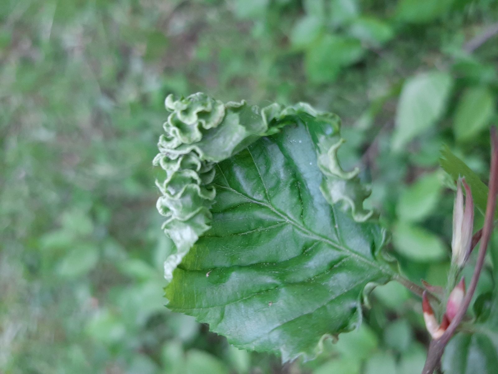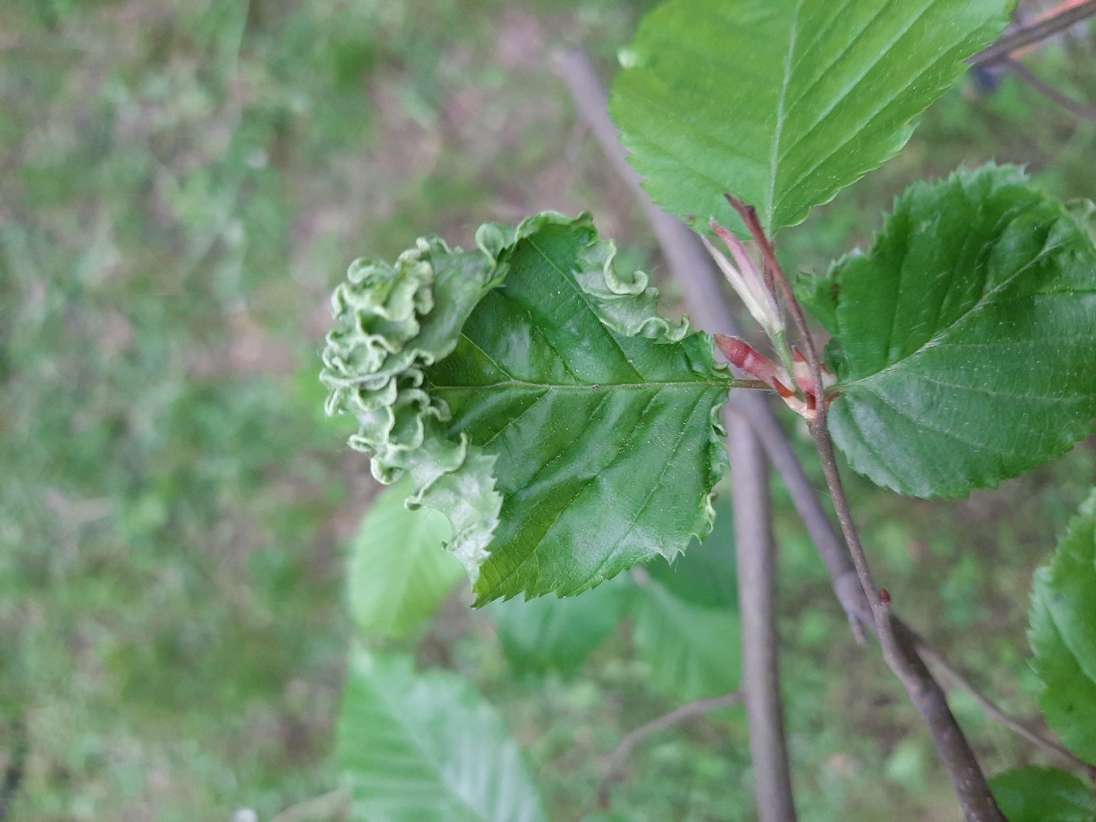 Takto skrúca listy bežný druh roztoča na listoch hraba - roztoč Aceria macrotrichus. S podzravom M. Zúbrik