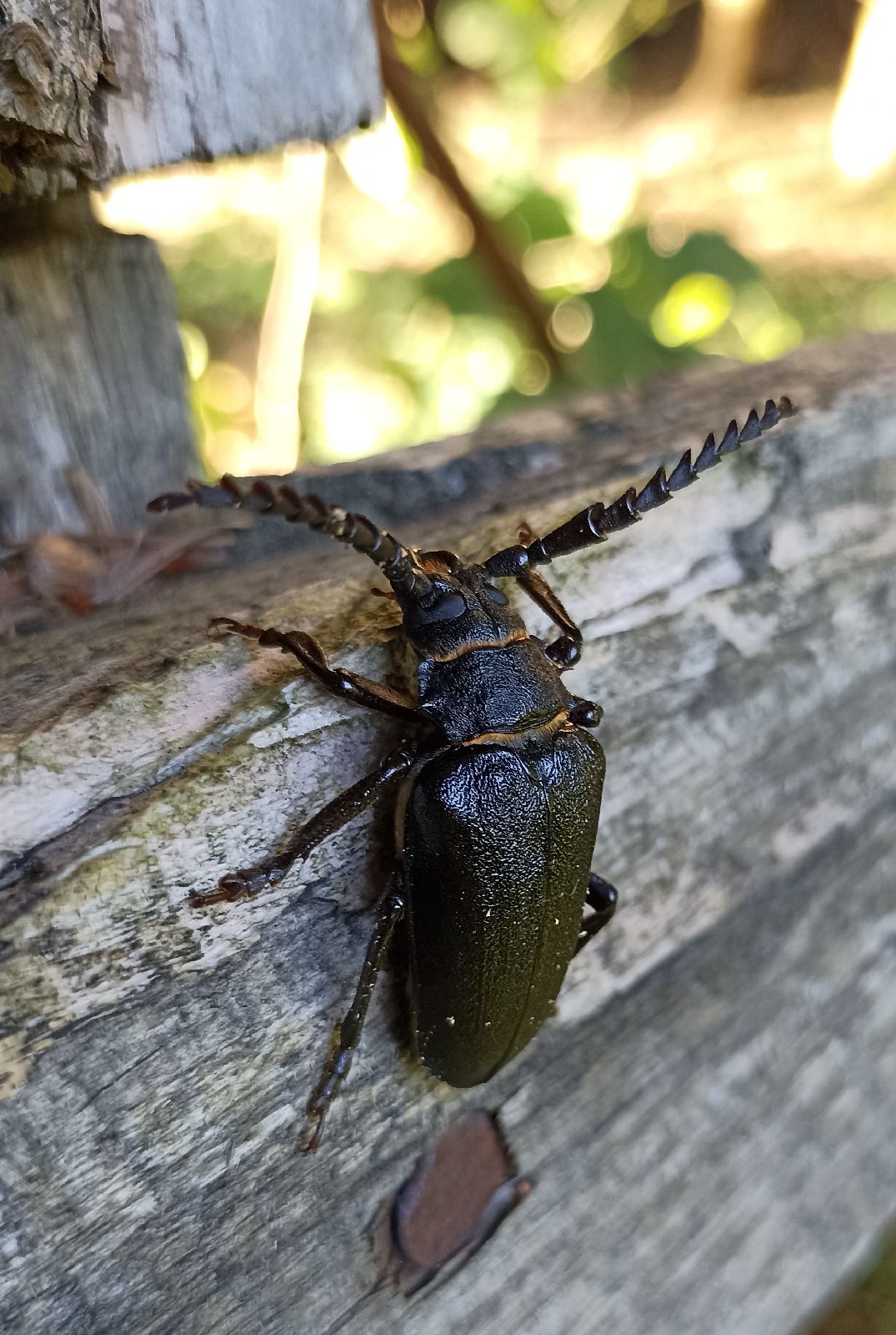 Dobrý deň, ďakujeme za parádne foto fuzáča hrubého (Prionus coriarius). Žije v rozkladajúcom sa dreve a drevinám neškodí. S pozdravom M. Zúbrik