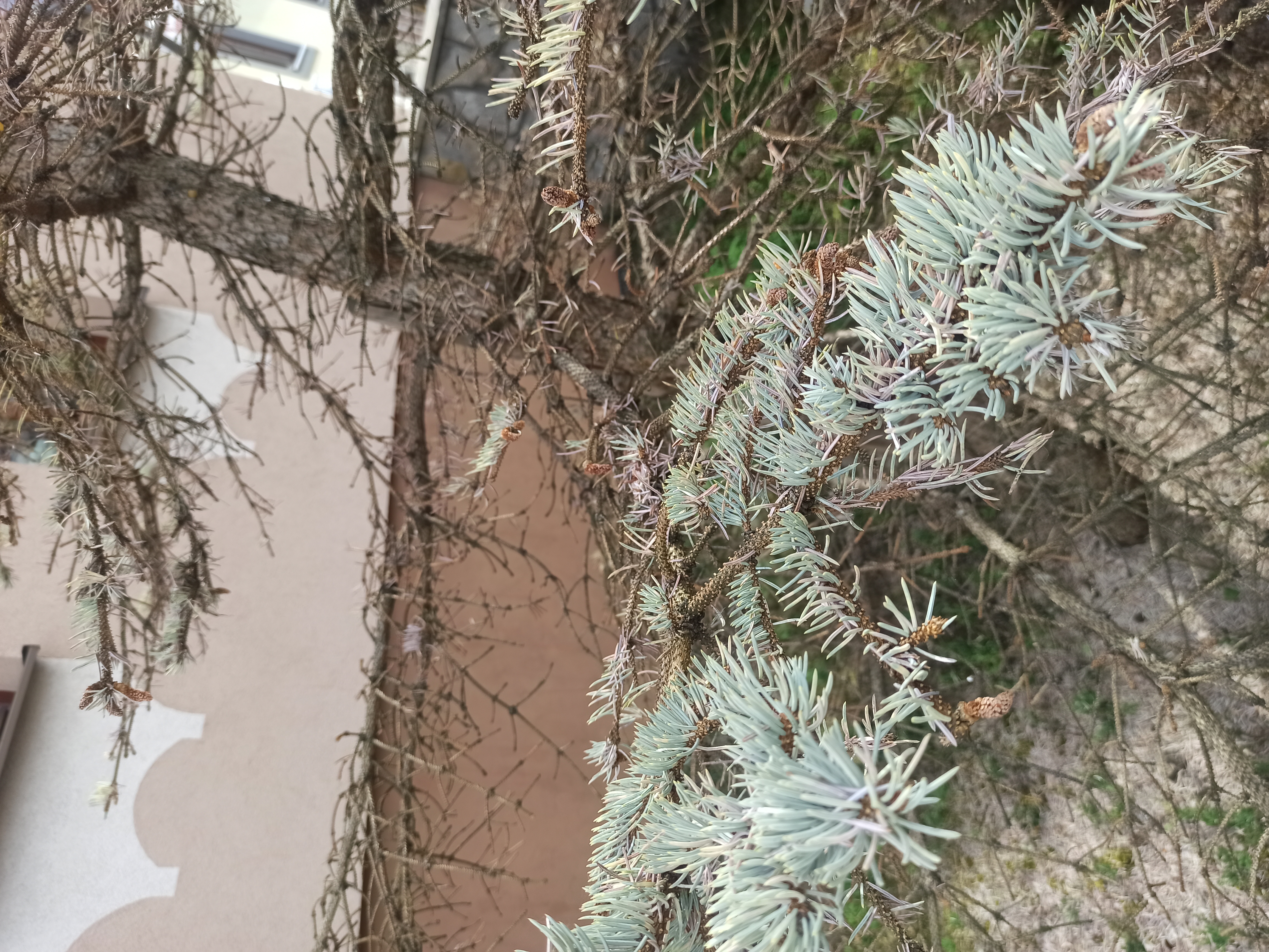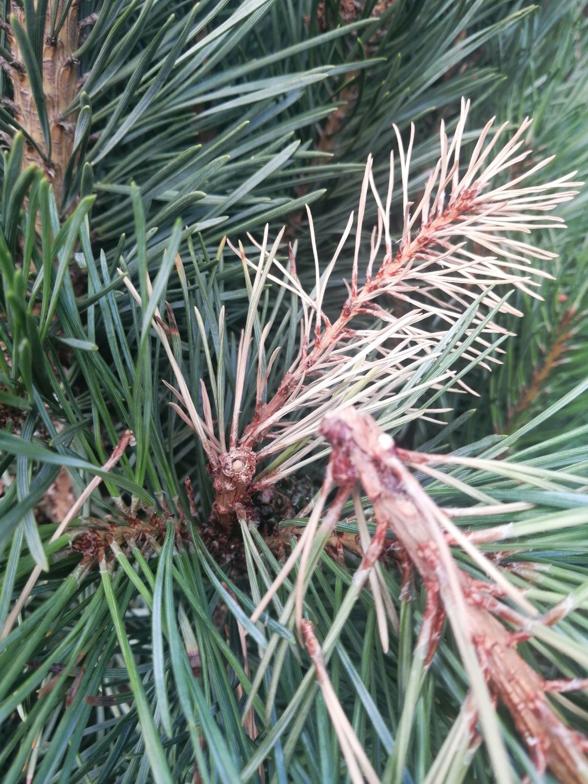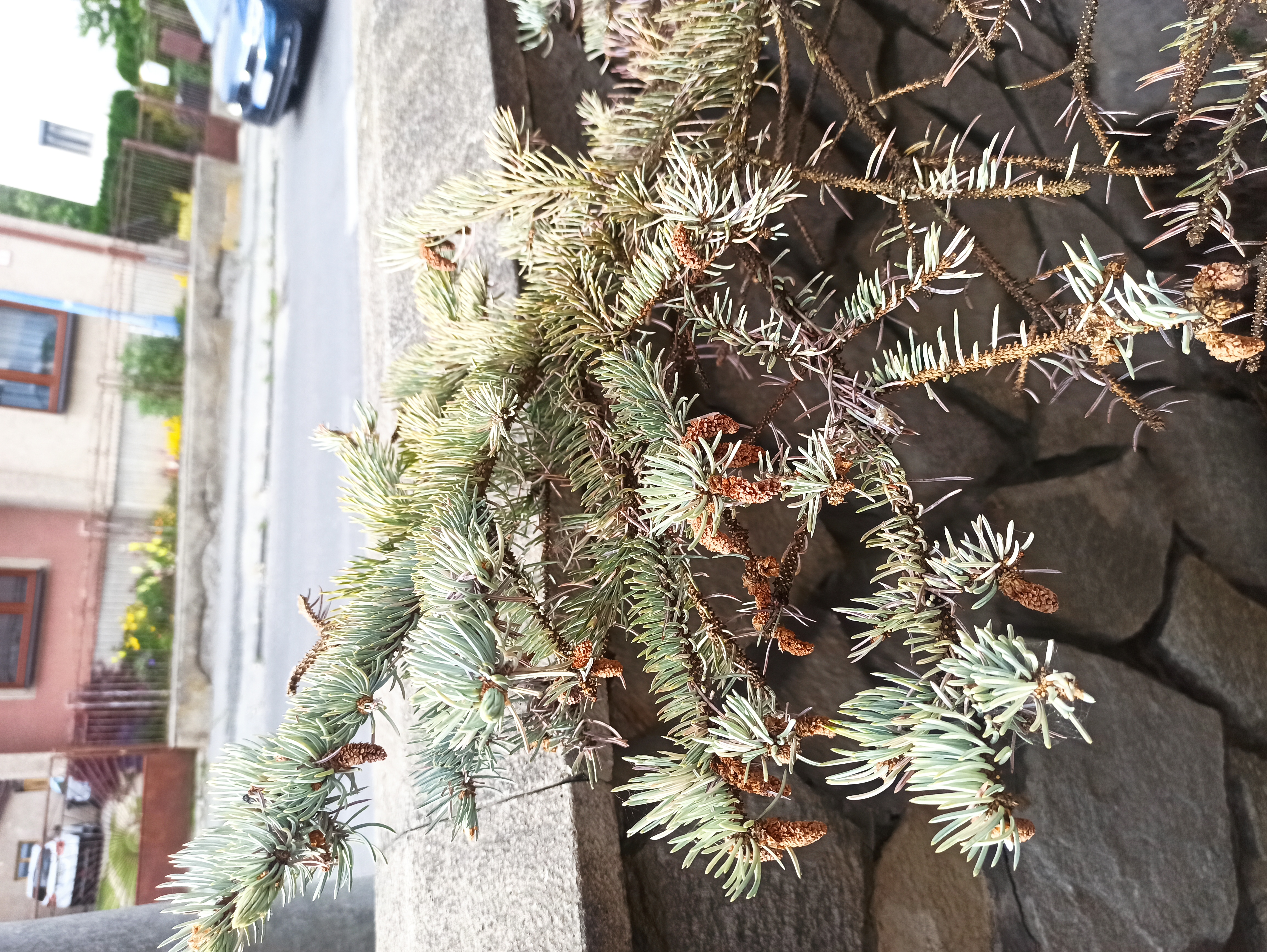 Na jeseň 2022 vysádzané smreky pichľavé začali cca pred 3 týždňami meniť farbu ihlíc na rôznych miestach koruny, nie je to odspodu nahor, ani nijak systematicky, rôzne konáriky začnú takto takmer červenieť..