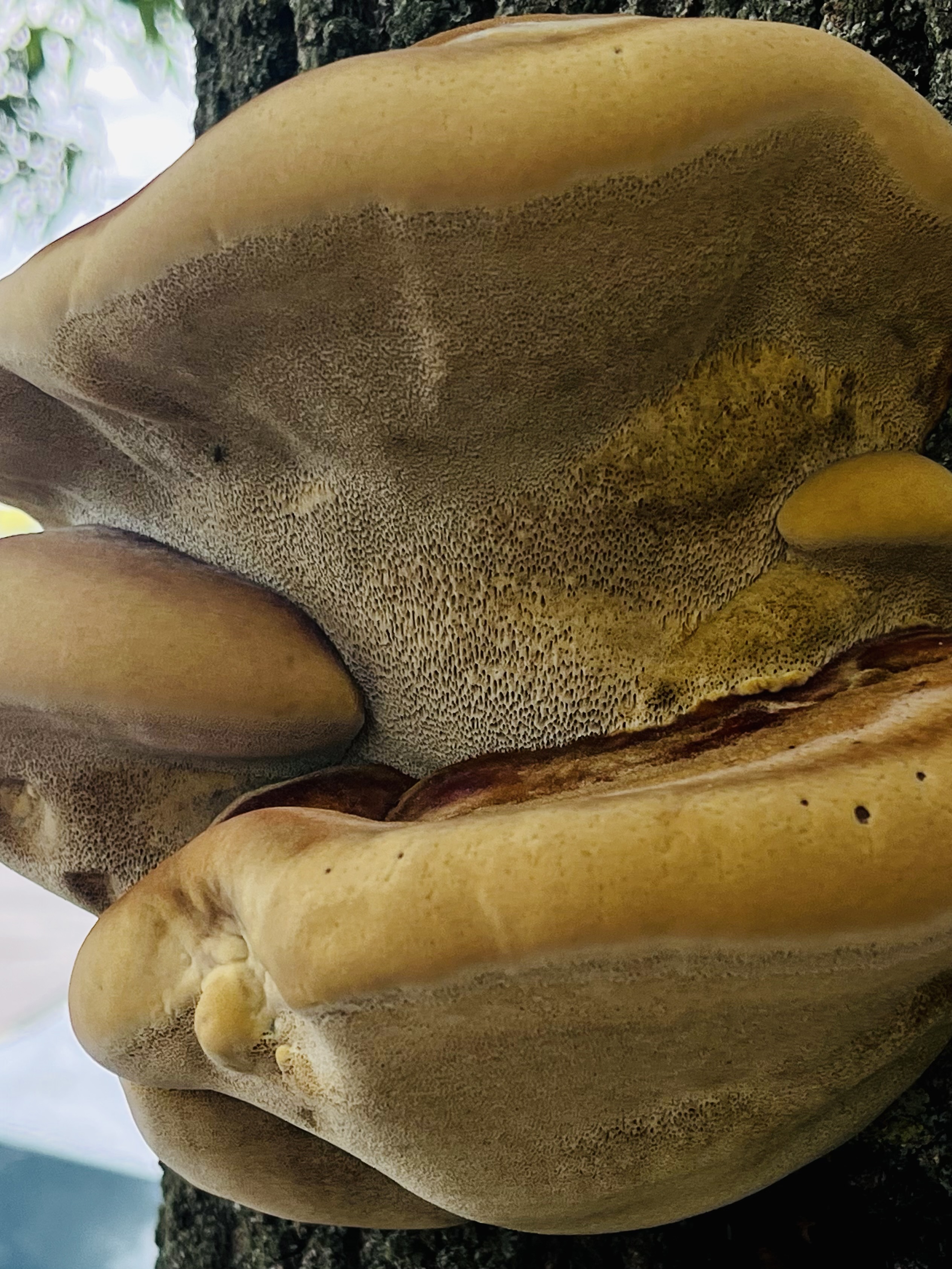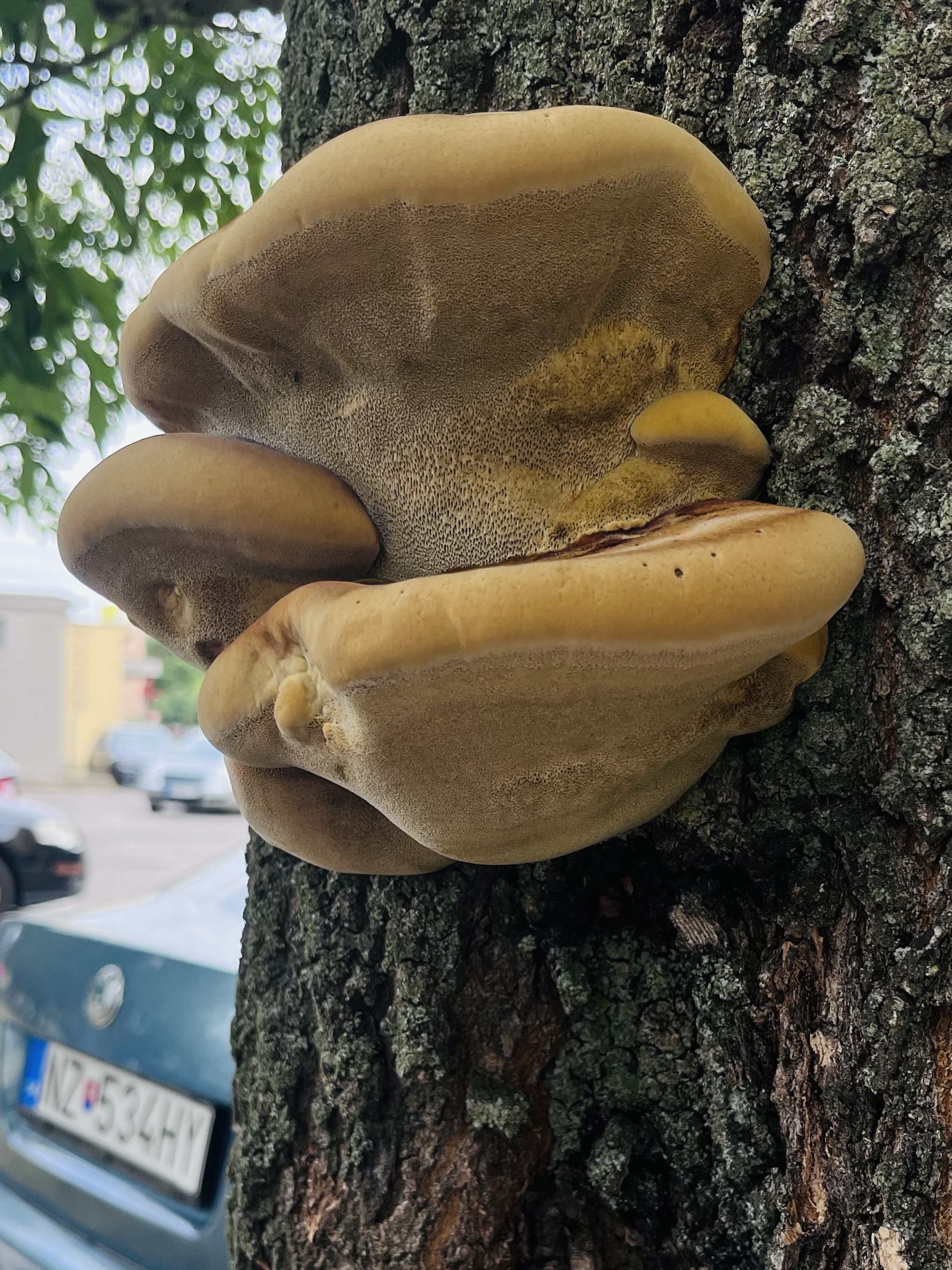 Zdravím, je to Inonotus hispidus ryšavec srstnatý. Huba spôsobuje bielu hnilobu dreva, fyziologicky je strom takmer nepoškodený, a s hnilobou jadrového dreva dokáže žíť aj 20 rokov.