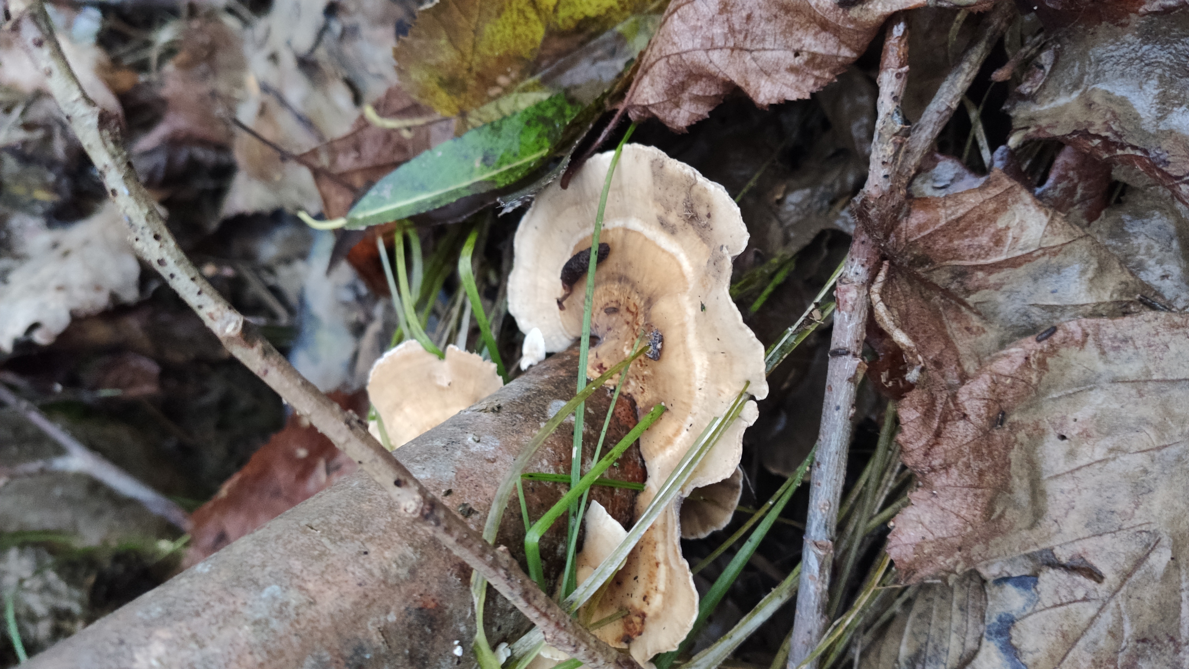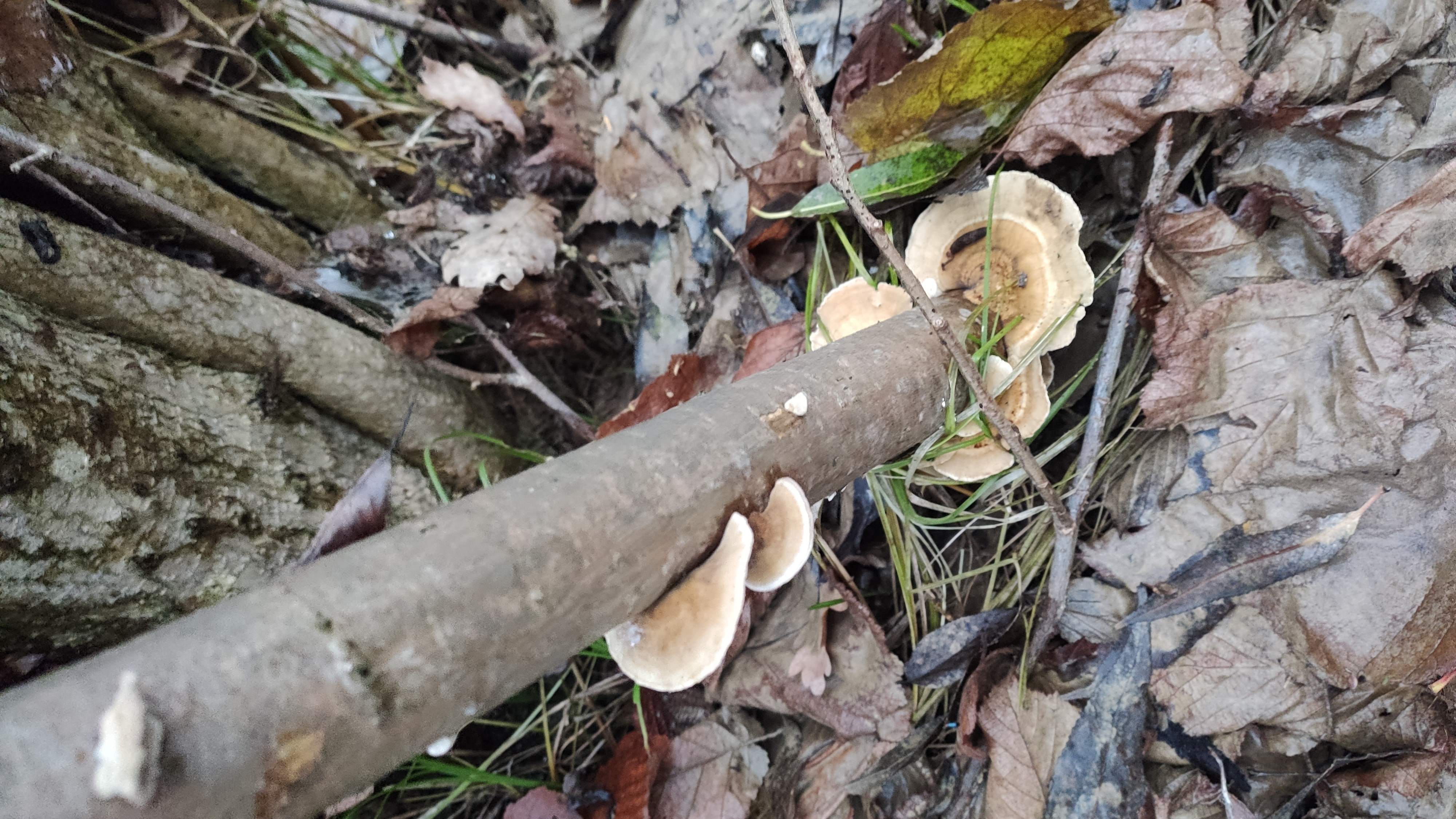 mohlo by to byť Stereum hirsutum, ale chýba pohľad na hymenofor. Preto je to neisté.