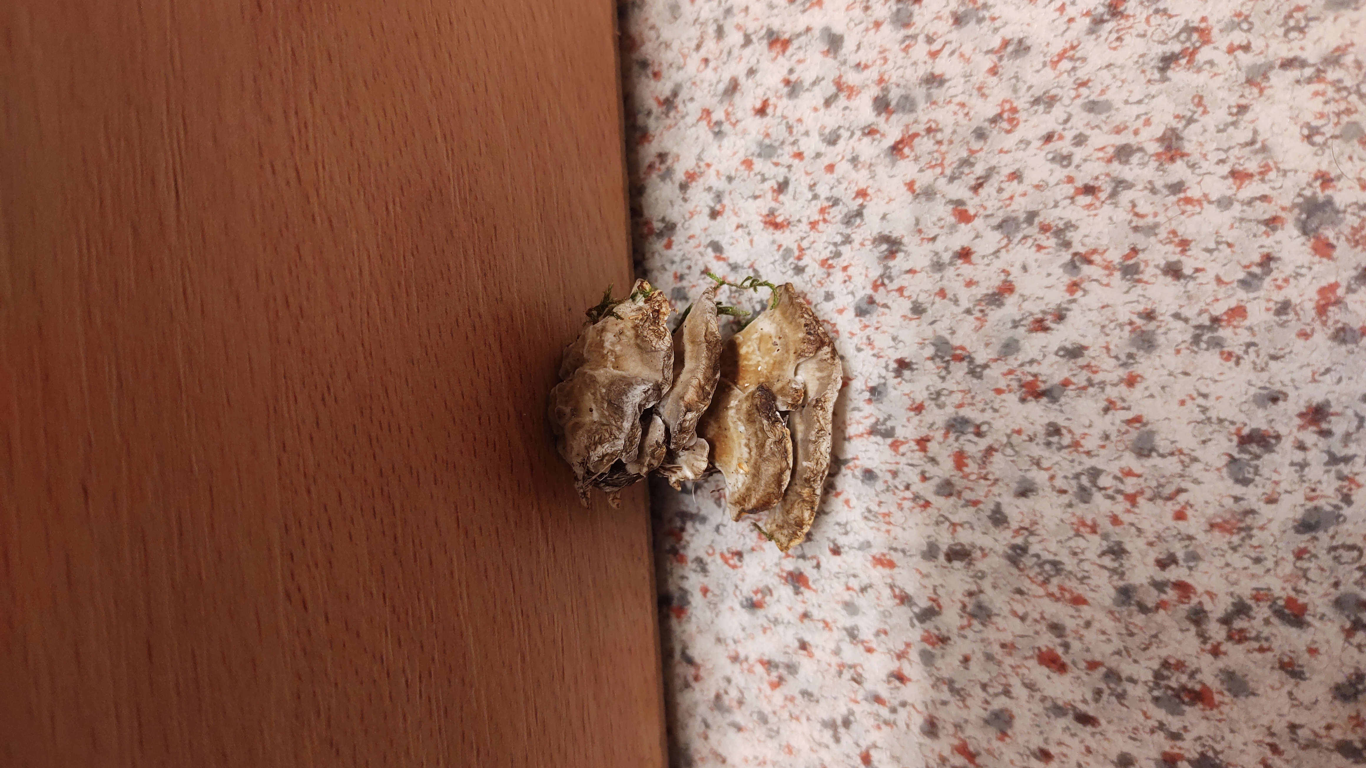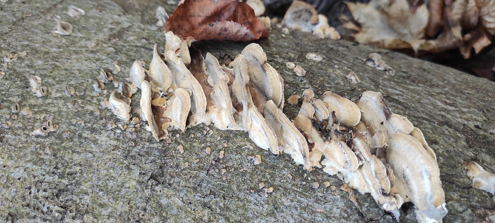 Dobrý večer, chcel by som Vás poprosiť o určenie tejto huby. Nepamätám si strom, z ktorého som to bral, ale huba má rebríčkový vzhľad, čiže je tak stupňovite nad sebou. Na výšku je to veľké tak 3,5 - 4 cm na výšku. Ďakujem Vám vopred za určenie. Prajem pekný zvyšok dňa.