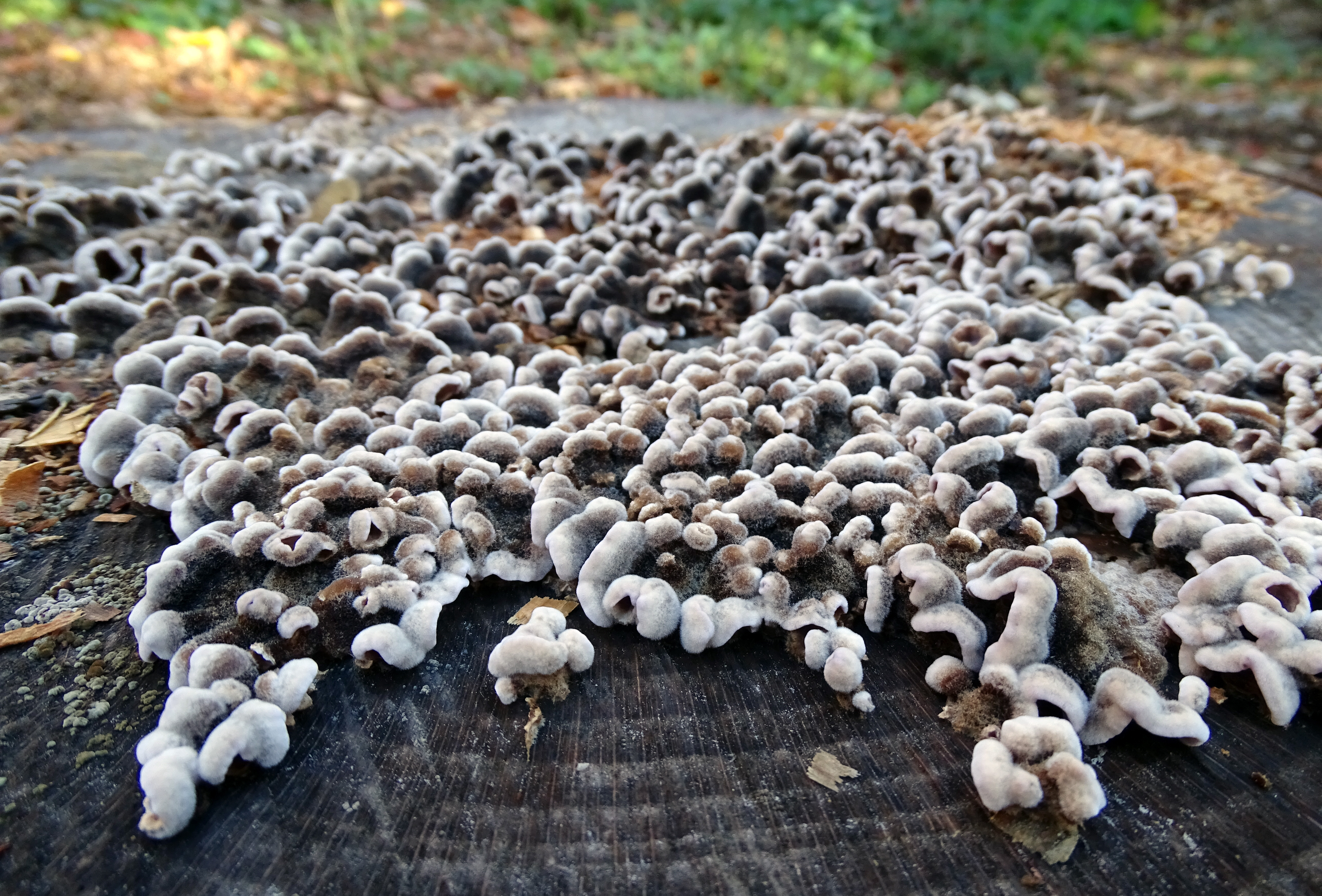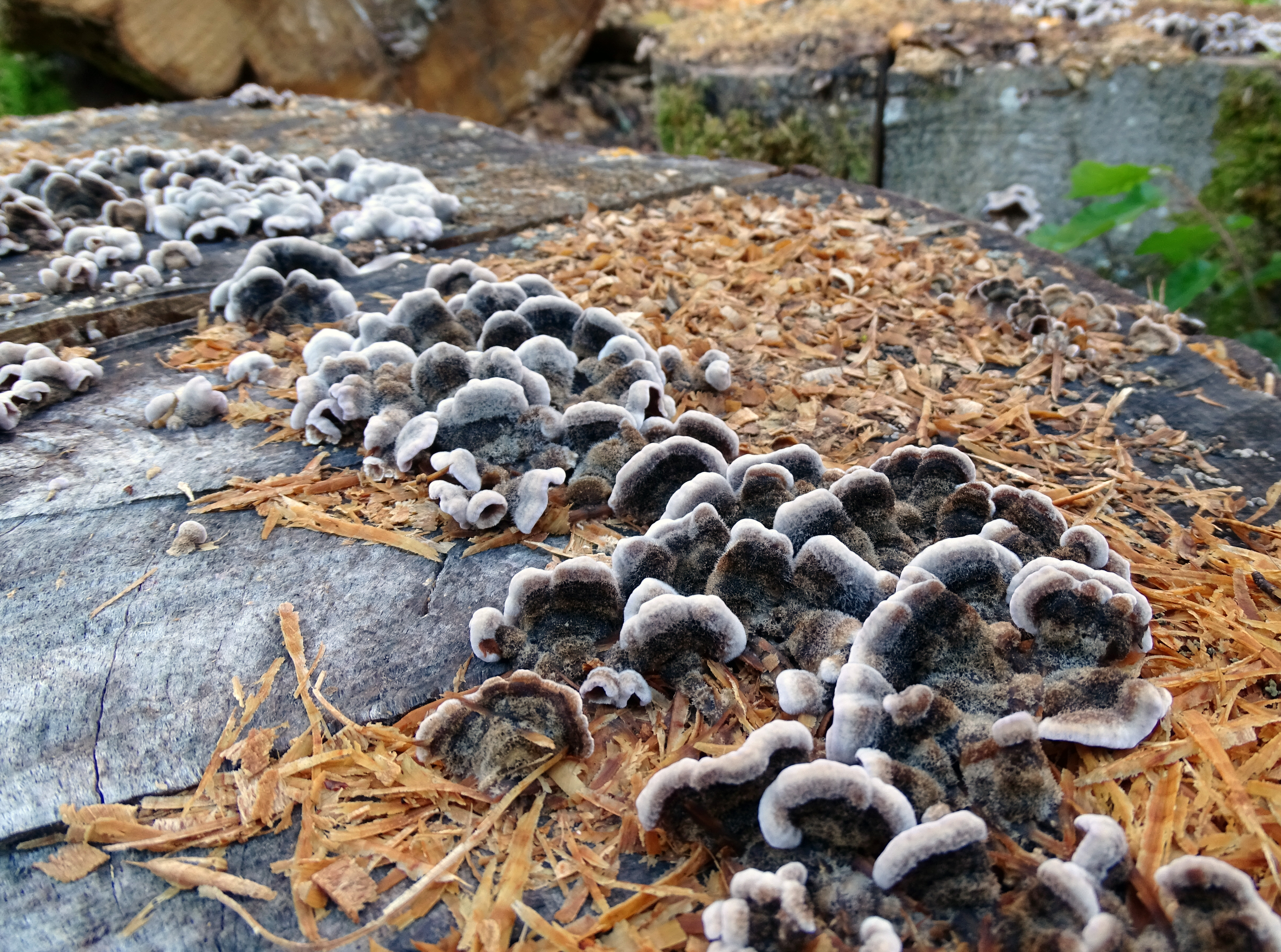podľa priloženej fotografie sa pravdepodobne jedná a Trúdnikovec chlpaty - Trametes hirsuta. Viac sa docitate na https://www.skodcoviadrevin.sk/skodca/trudnikovec-chlpaty