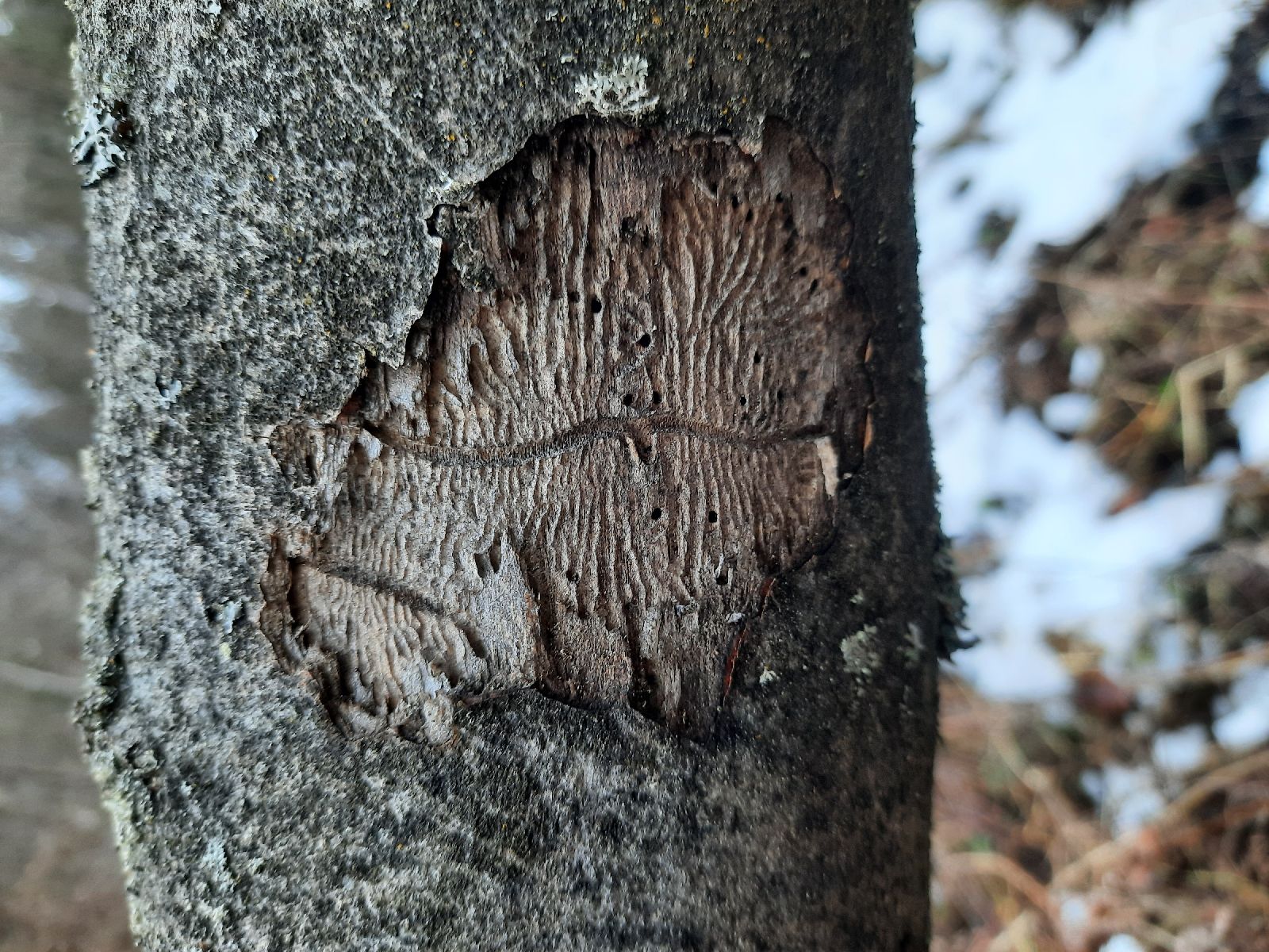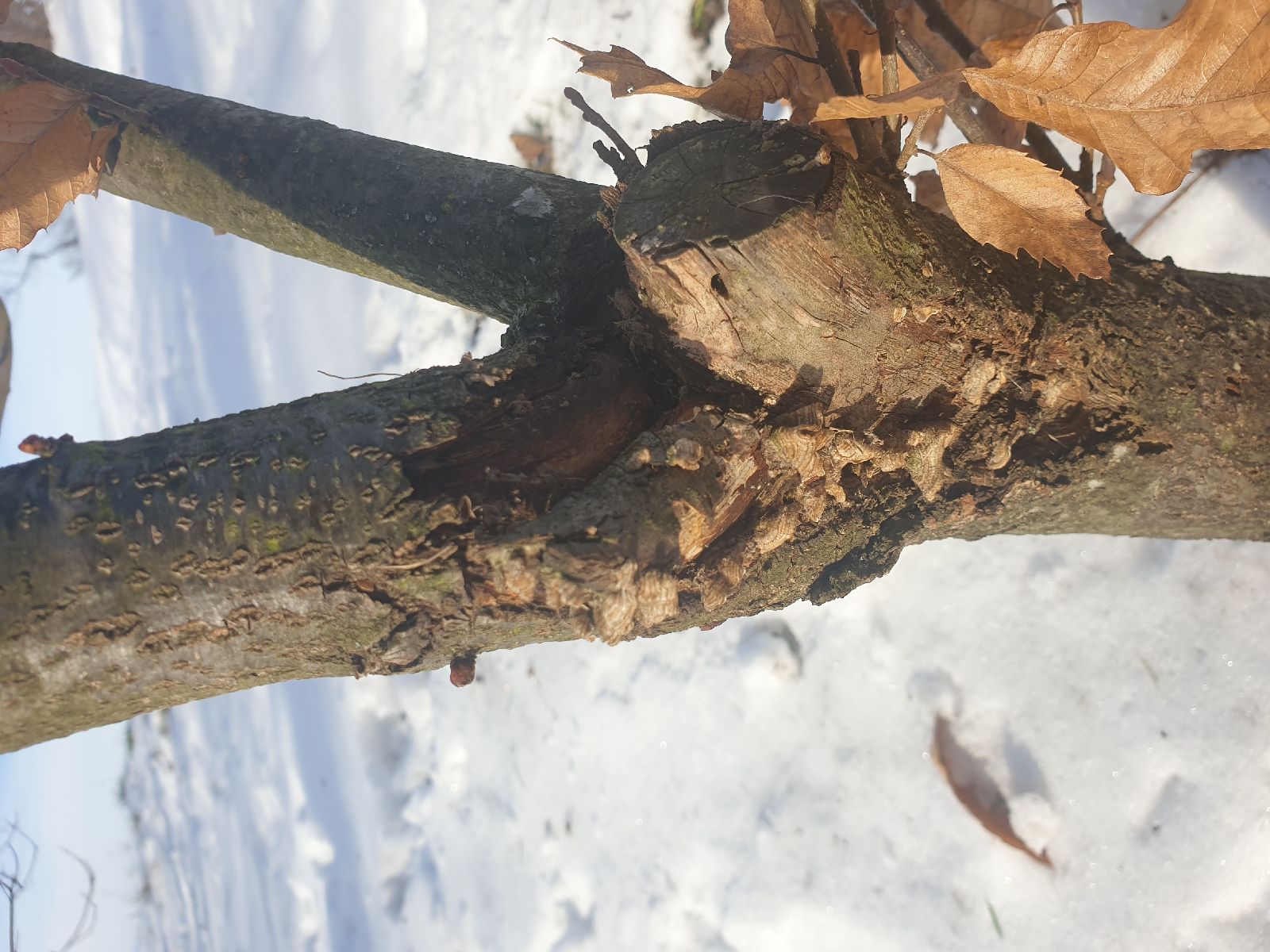 Dobrý deň, ďakujeme za dotaz. Chodby pod kôrou sú vyplnené pomerne hrubými striesočkami, čo naznačuje, že poškodenie mohla spôsobiť larva nejakého fúzača - na kmeni borovice je pomerne hojný druh napríklad vrzúnik Monochamus galloprovincialis. https://www.skodcoviadrevin.sk/skodca/vrzunik-monochamus-galloprovincialis Nedá sa úplne vylúčiť, že poškodenie spôsobol nejaký iný, príbuzný druh fuzáča. Pekný deň MZ.