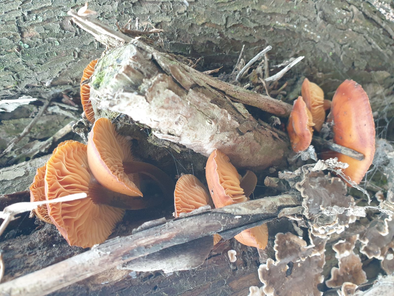 podľa priloženej fotografie sa jedna o Koznačku hrdzavohnedú - Hymenochaete rubiginosa. Plodnice sú kožovité, smerujúce dole, klobúk je rozložený na spôsob skridlíc s úzkymi pásikmi po obvode, okraj klobúkov je žltkastý. Huba spôsobuje pľuzgierovitú hnilobu dubov a gaštanov. Často sa vyskytuje na spracovanom kmeni gaštana, na pňoch a opadnutých konároch.