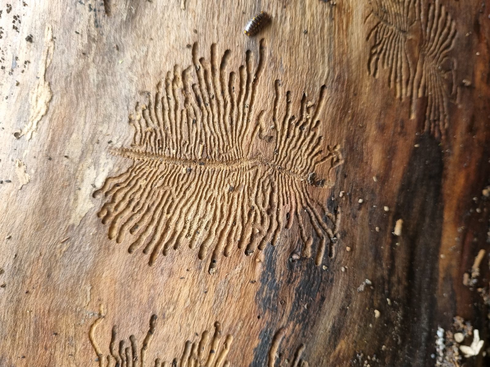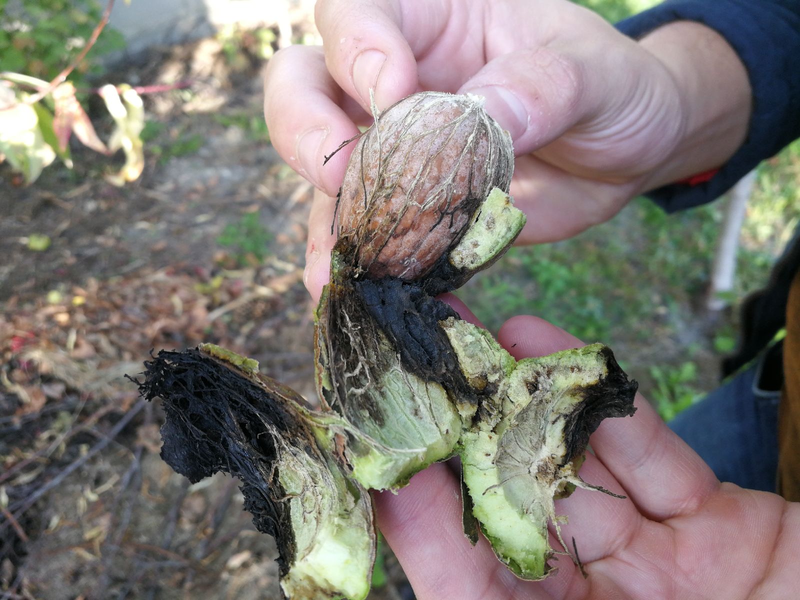 Ide o vrtivku orechovú Rhagoletis completa. V tomto jesennom čase na plodoch orecha už nie sú ani larvy a ani imága. Pravdepodone už zimujú v opadanke a v pôde.