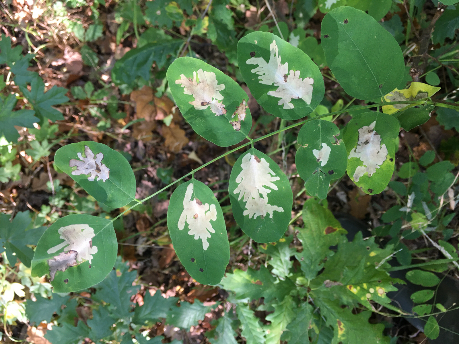 Dobrý deň, je to psotka agátová Parectopa robiniella. Je to malý motýľ, ktorého húsenica žije vo vnútri listy, kde vyhlodáva takýto požerok. Nie je to náš pôvodný druh. Pochádza zo Severnej Ameriky a u nás žije asi od roku 1987. Pekný deň M.Z.