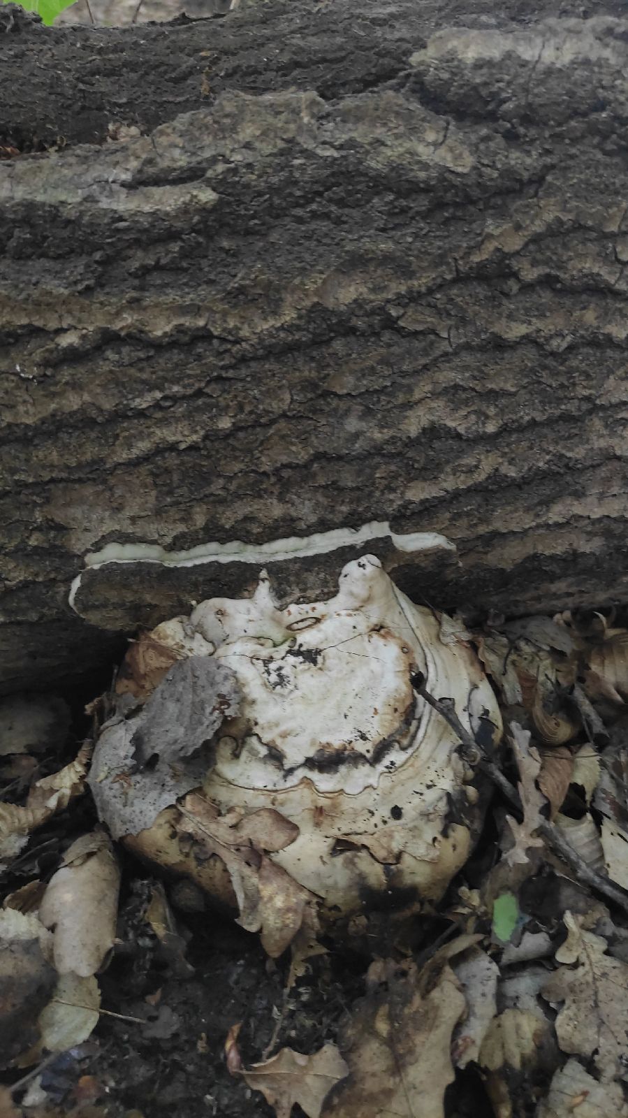 Poškodenie sa nachádzalo na pni. Drevinu som nevedela identifikovať. V poraste sa ale nachádzal dub zimný, hrab a čerešňa vtáčia. Poškodenie som určila ako stereum hirsutum