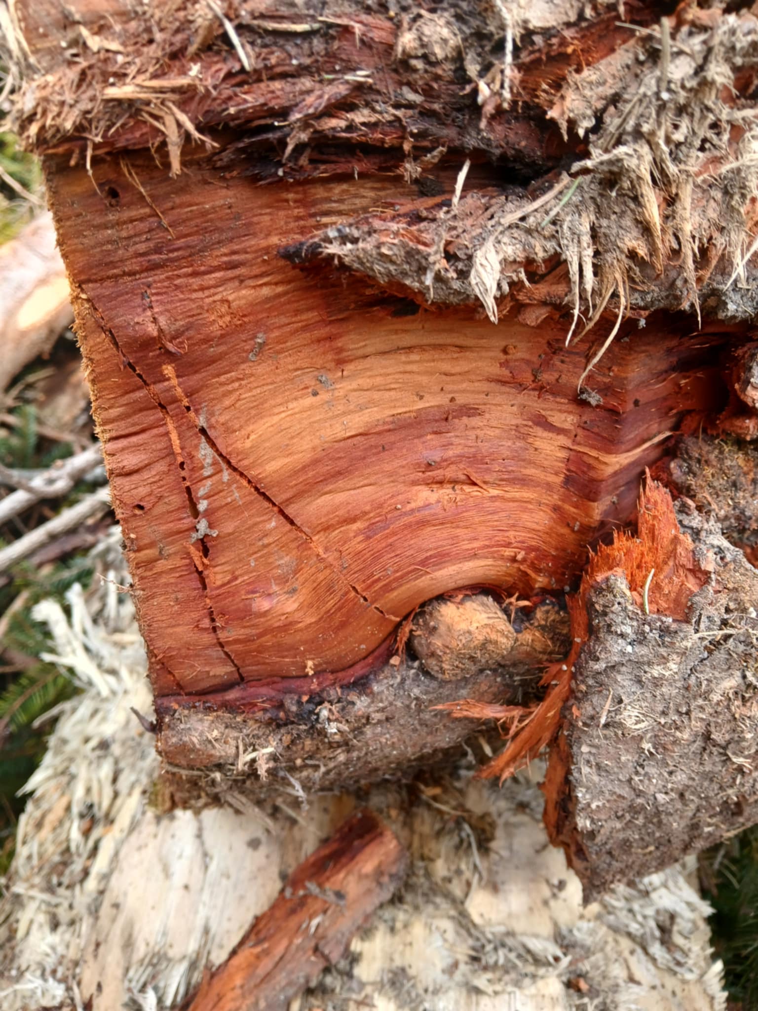 Dobrý deň pani Babjaková, nakoľko sa na obrázku nenachádzajú plodnice drevokaznej huby, predpokladám podľa typu hniloby, že sa jedná o poškodenie koreňovkou vrstevnatou. Jedná sa o staršie napadnutie, v poslednom štádiu degradácie dreva. Taktiež je viditeľné poškodenie jadra aj drevokazným hmyzom, pravdepodobne mravcami. Pekný deň s pozdrabvom Roman Leontovyč.