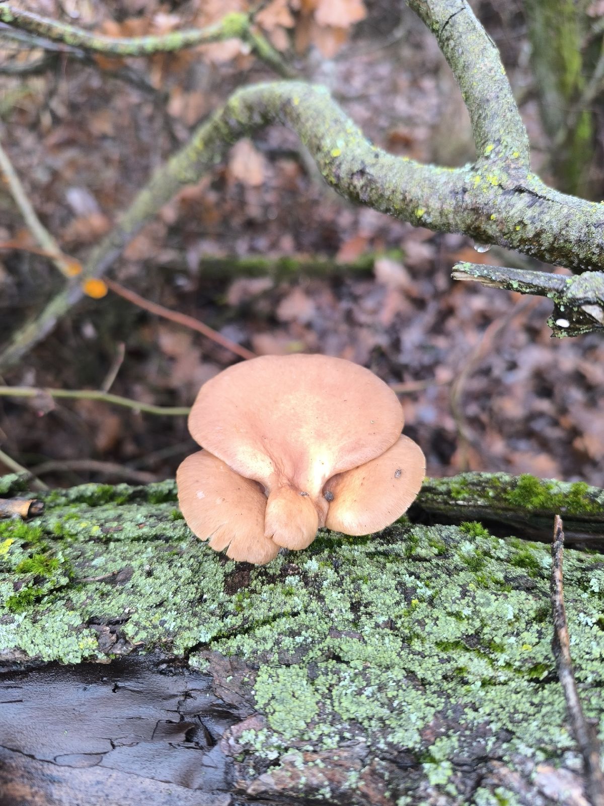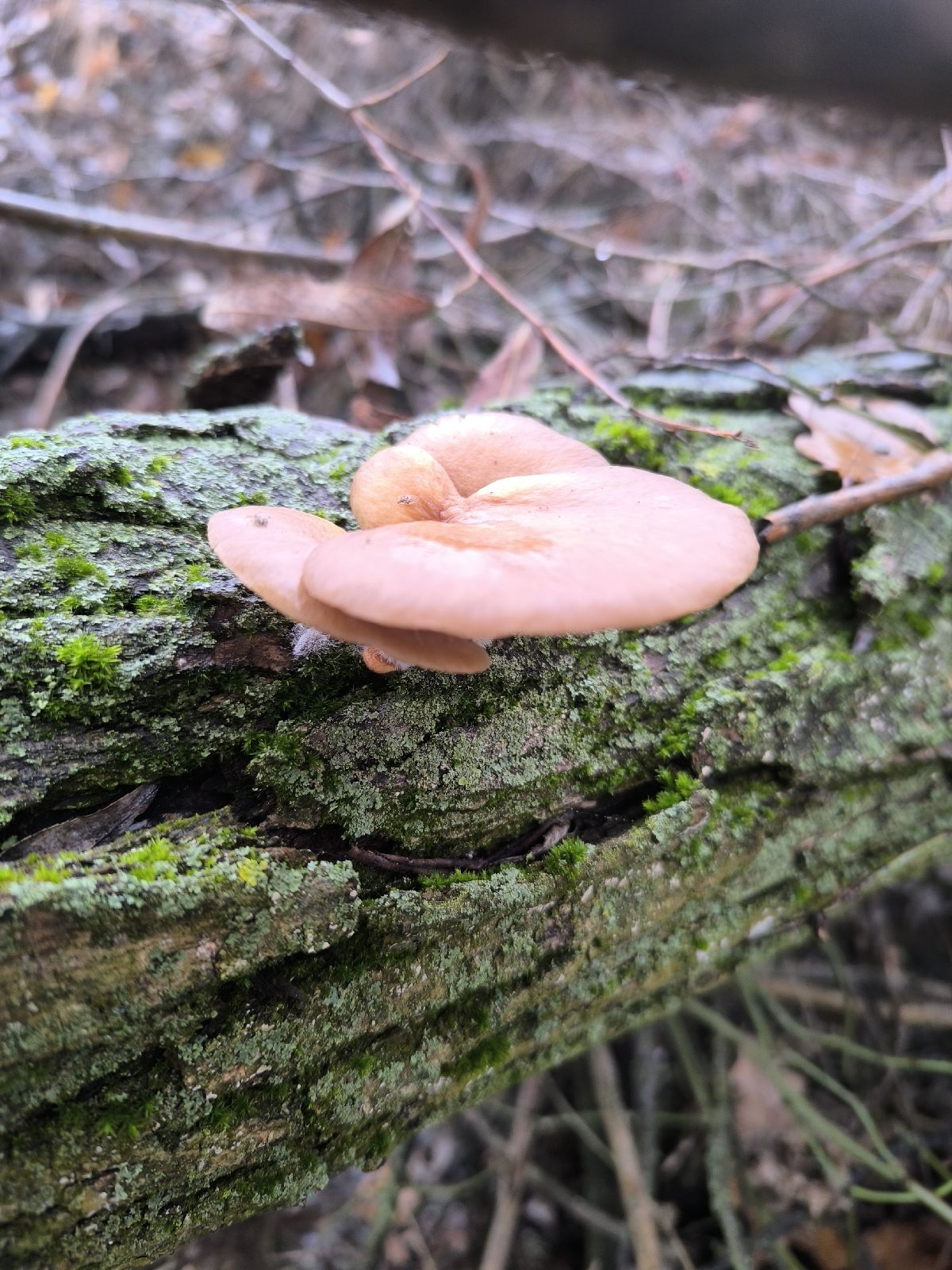 Malo by ísť o Plaeurotus ostreatus. Podobná Panelus serotinus má hustejšie lupene ... a pre hlivu hrá aj ročné obdebie, kdey sú hlivy samozrejmosťou.
