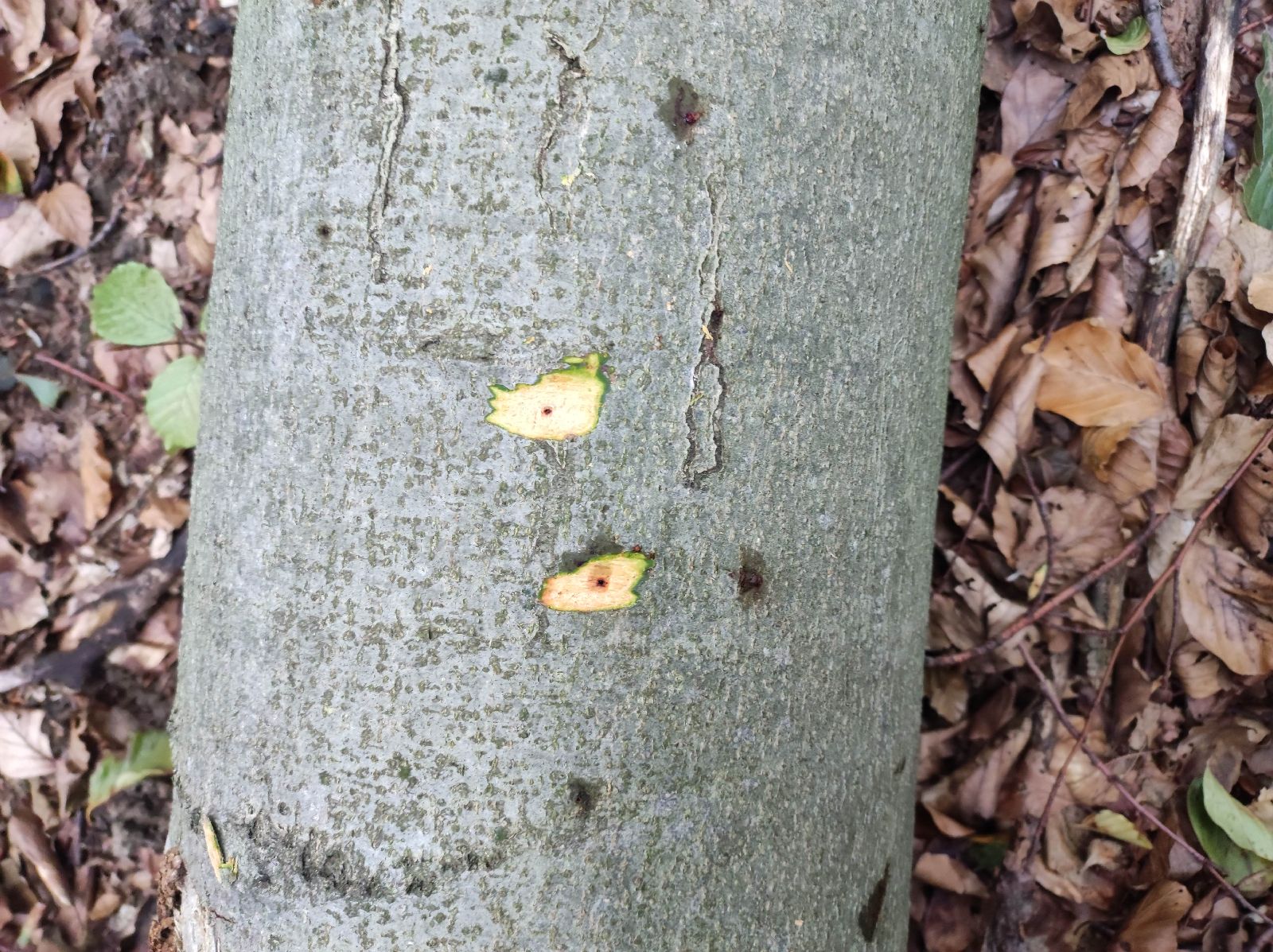 Dobrý deň. Áno, na obrázku sú závrtové otvory lykožrúta bukového. Ďakujeme za bod do monitoringu. S pozdravom JG