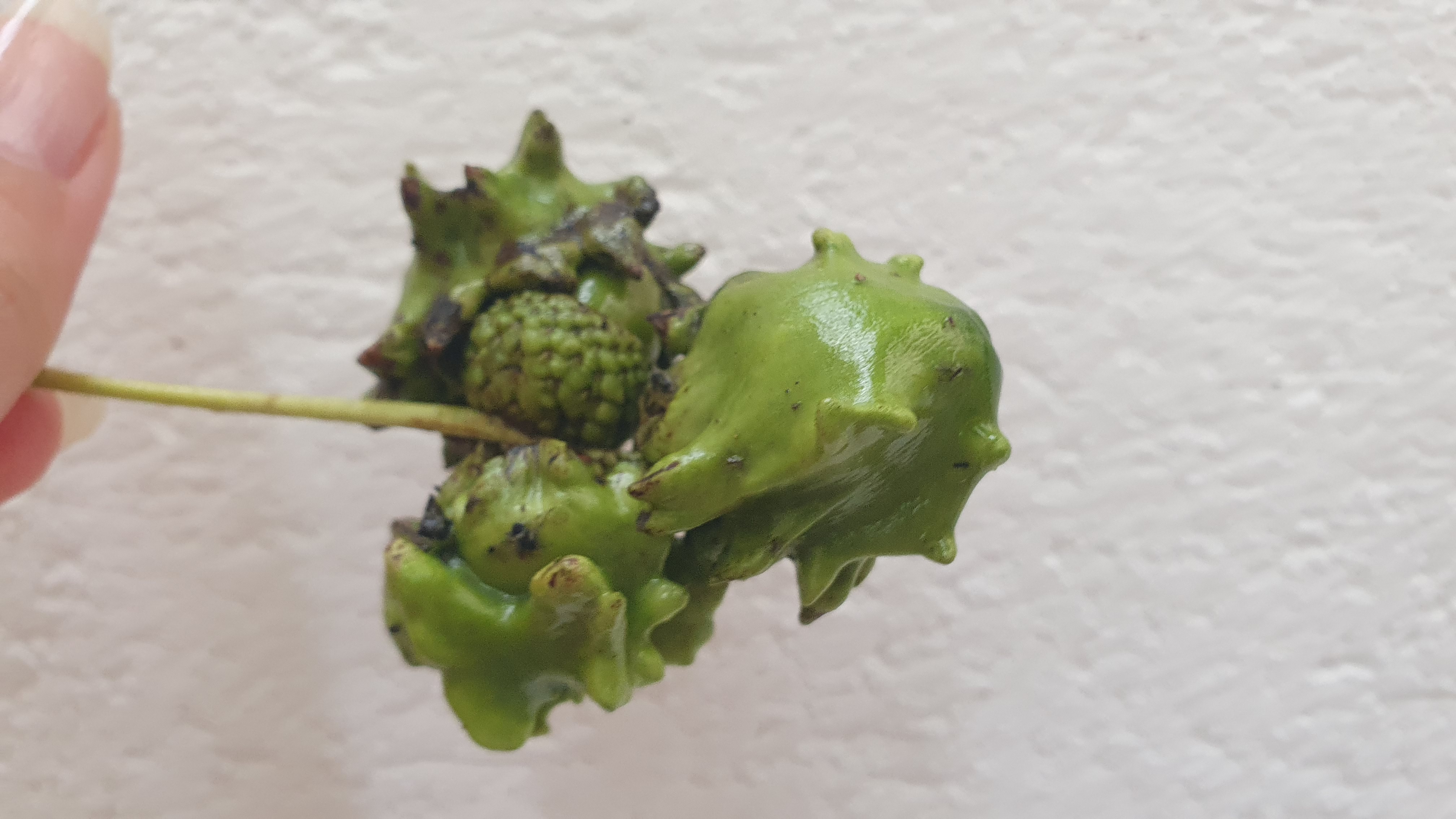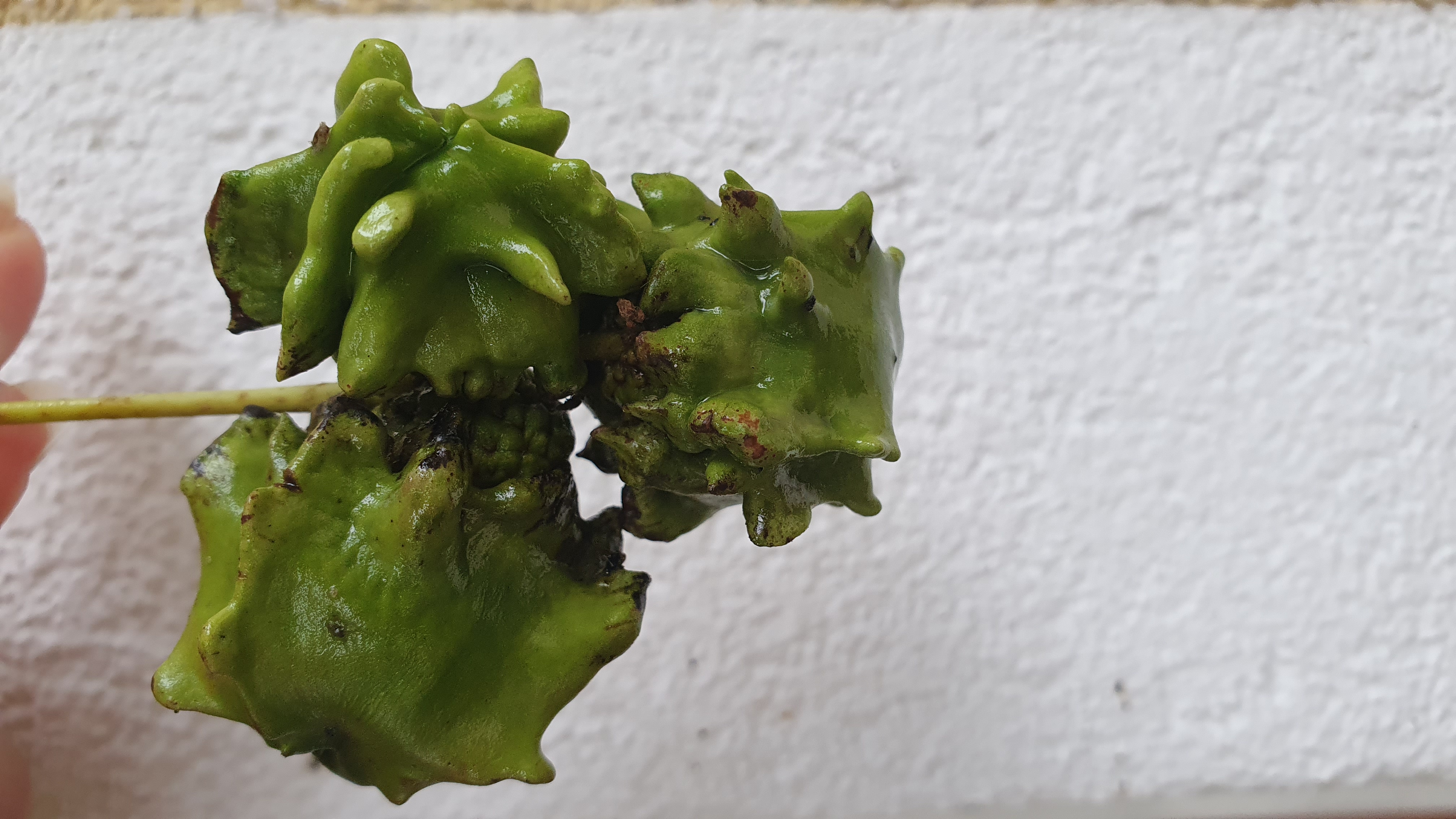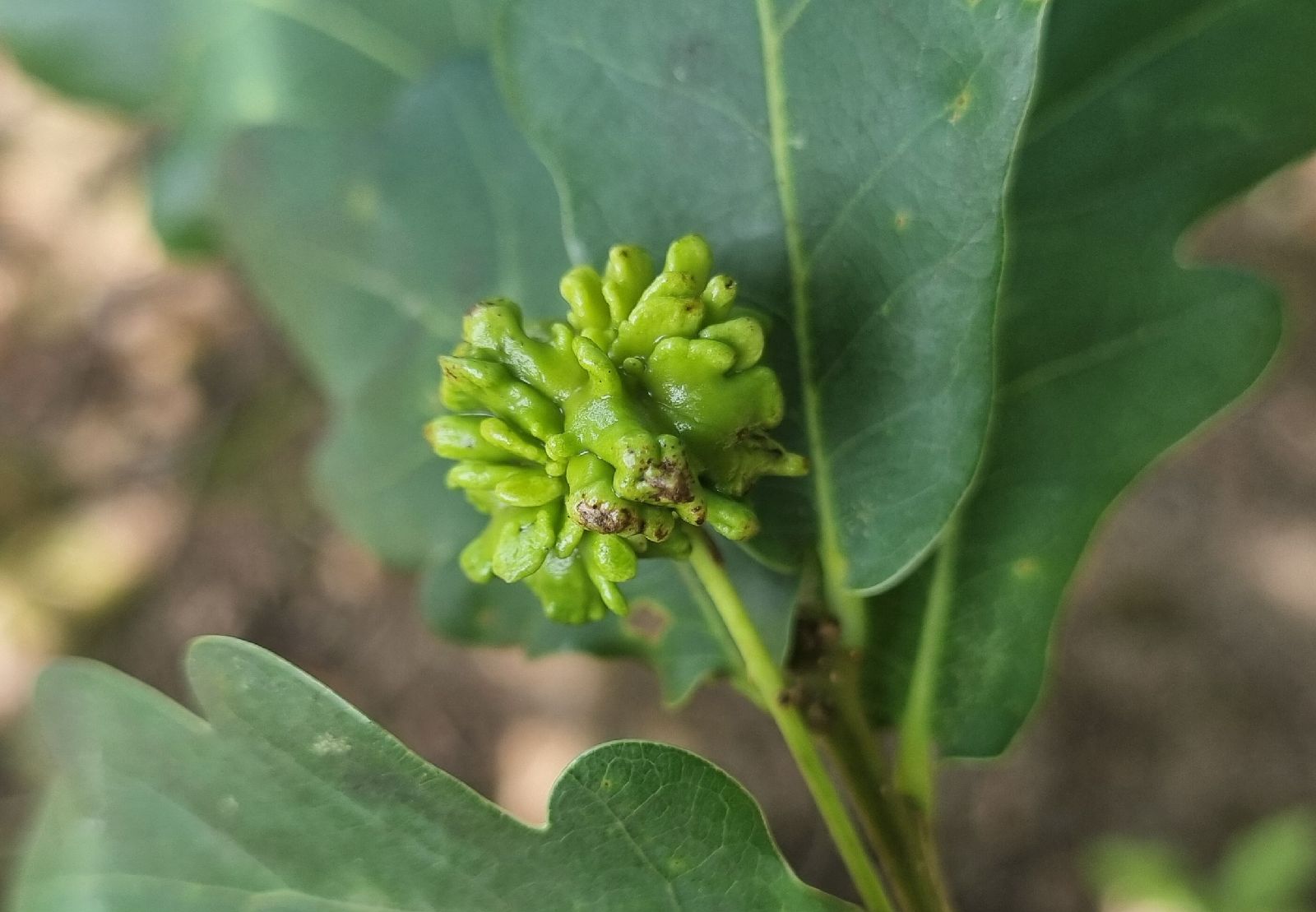 Hi Tina, than you for your requestt. This is caused by Andricus quercuscalicis, a small wasp species. It's called a Knopper gall. The female wasp lays her eggs on the acorn cup in May and injects a special fluid into it. In response, the oak tree forms a strange growth – a green, irregular lump about 2 cm long, known as a gall. Inside this gall, the wasp larva develops. With best regards Milan Zubrik