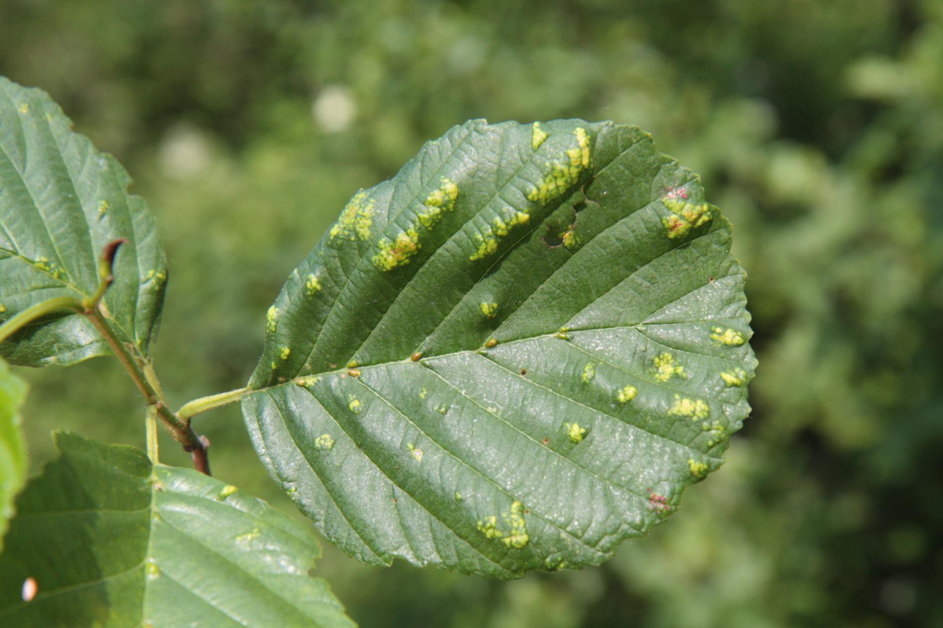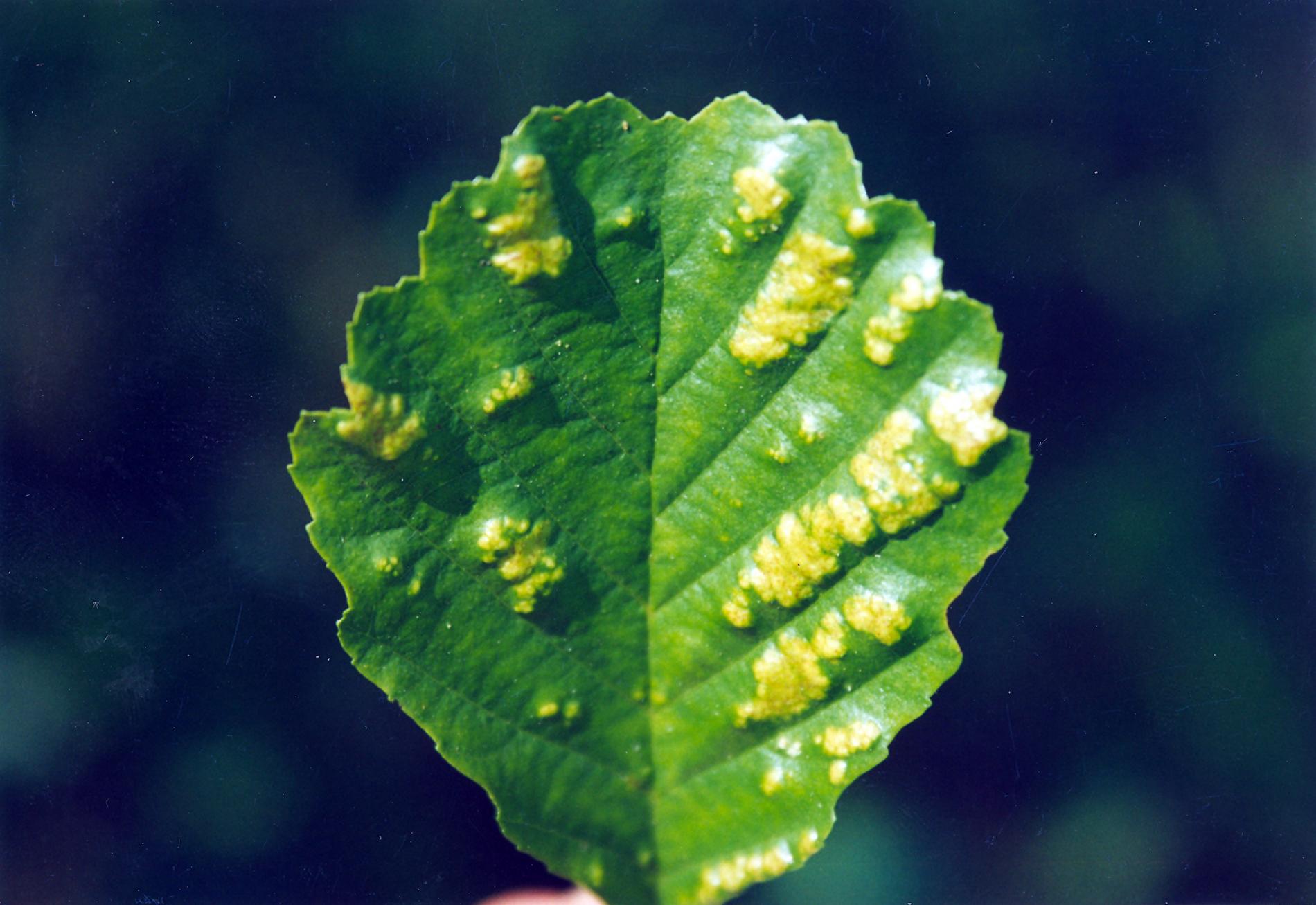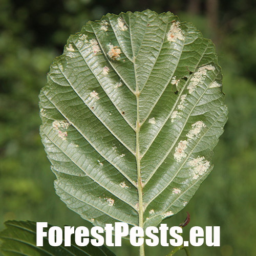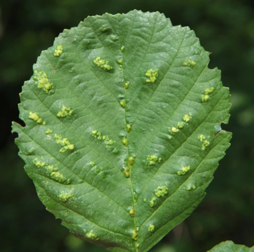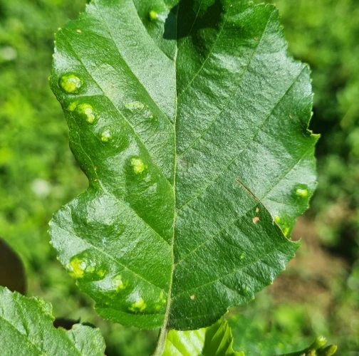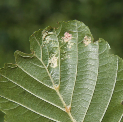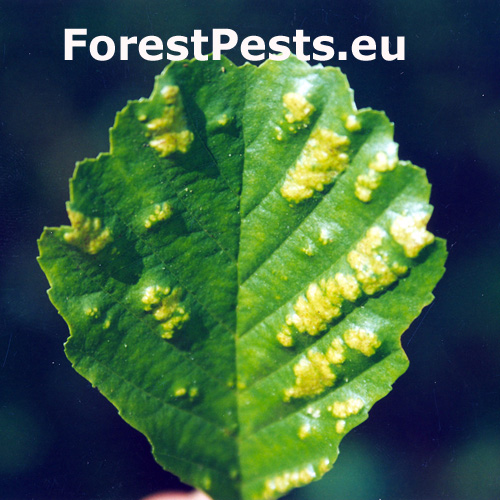 This mite causes the formation of flat, felt-coated areas on a host leaves. These are located in the intercostal space at the bottom of the leaf. On the upper side of the leaf, the damage is seen as lightening and yellowing of the surface.