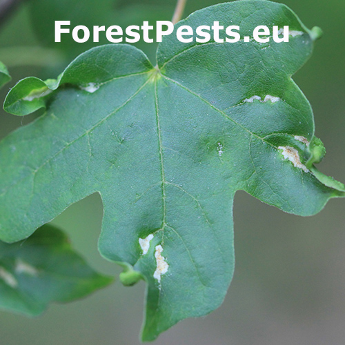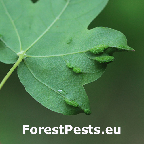 Aceria carinifex mite is extremely small, measuring only around 200-300 micrometers in length. They possess a transparent body with a worm-like appearance. These mites have specialized mouthparts adapted for piercing plant tissues and feeding on the cell contents. Aceria carinifex mites are gall-inducing pests. They cause the formation of galls on the leaves and buds of maple trees, particularly on Acer campestre (field maple). These galls are small, blister-like structures that develop as a result of the mites\' feeding activities. It is generally considered as minor pests and do not cause significant harm to the overall health of maple trees. The galls may cause slight deformations or discoloration on the affected leaves or buds, but they rarely result in serious damage or tree decline.