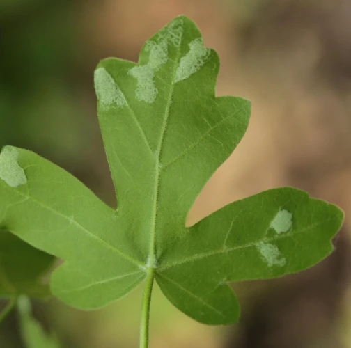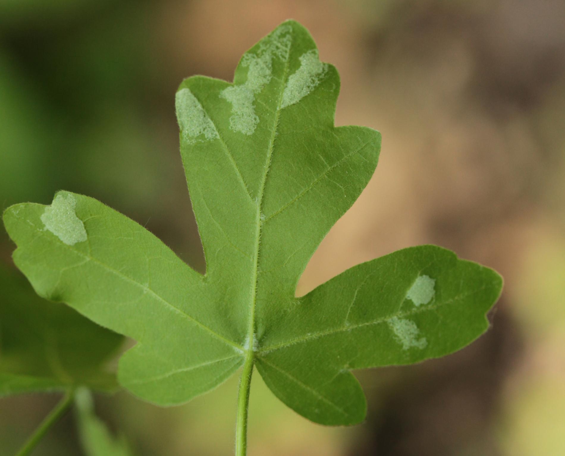 The gall mite Aceria macrocheluserinea causes a felt like swelling (erineum) of the underside of the leaves of field maple Acer campestre. Coatings appears white at first, later on it can turn red or brown. Numerous mites live in a dense hairs shelter.