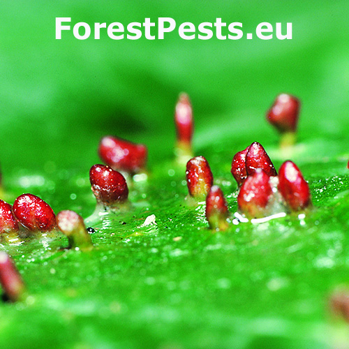 Red galls on the upper side of the leaves, up to 0,6 mm tall, and with pointed tips. Intermediate forms can occur, and these can\\\\\\\'t be identified from the galls.