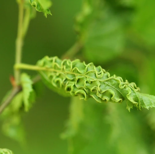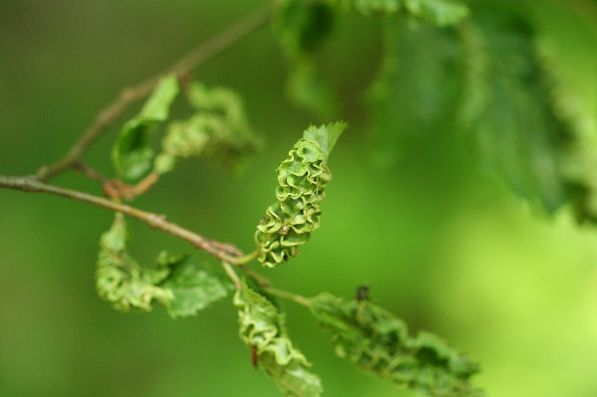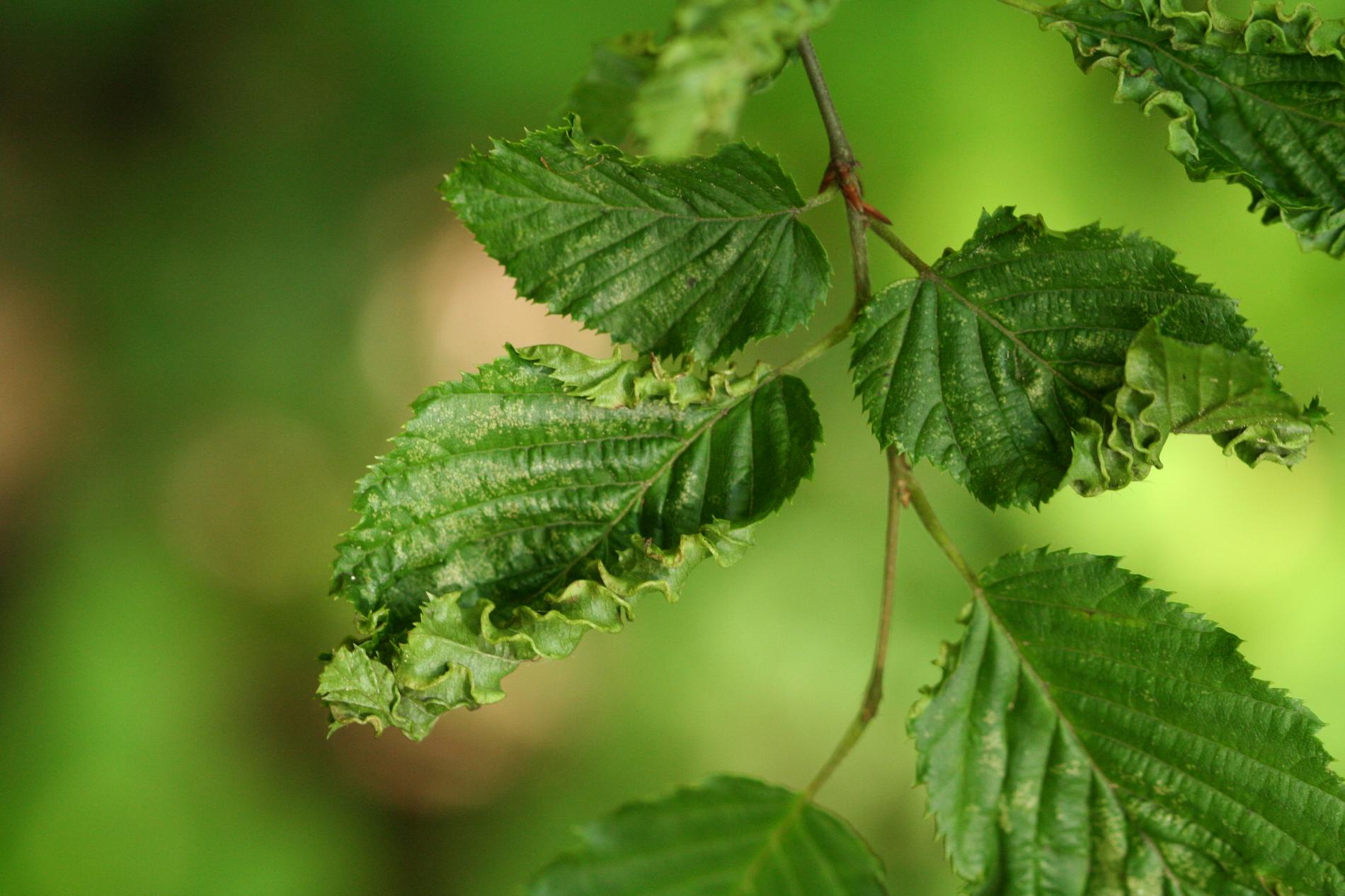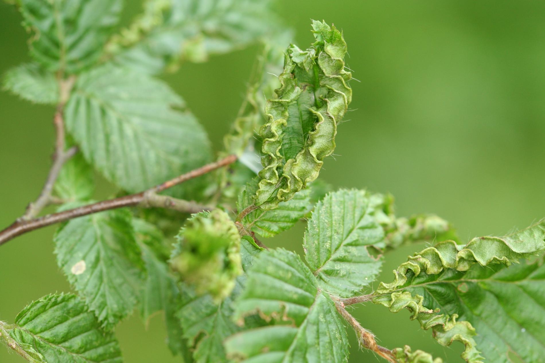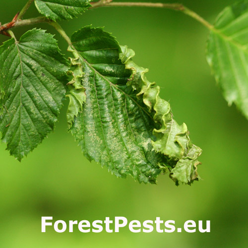 This microscopic mite lives on the lower side of leaves and around the side veins. As a result of its activity veins are deformed in a snake-shaped way and get irregularly thicker. It also causes deformations and rolling of leaves. It is commonly found particularly on younger trees. It is of no economic importance. It can reduce the aesthetic value of the tree.