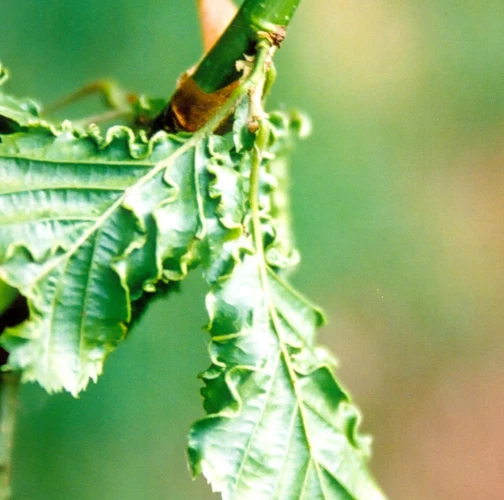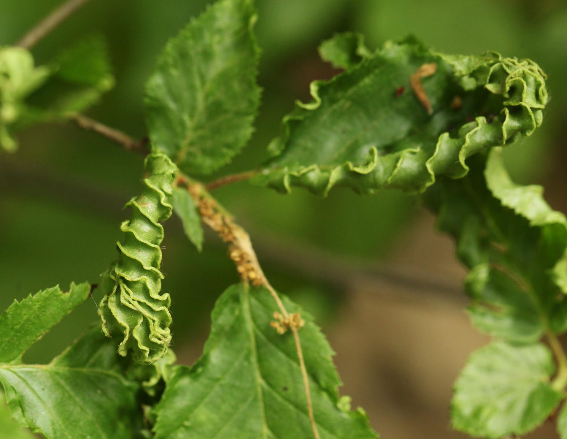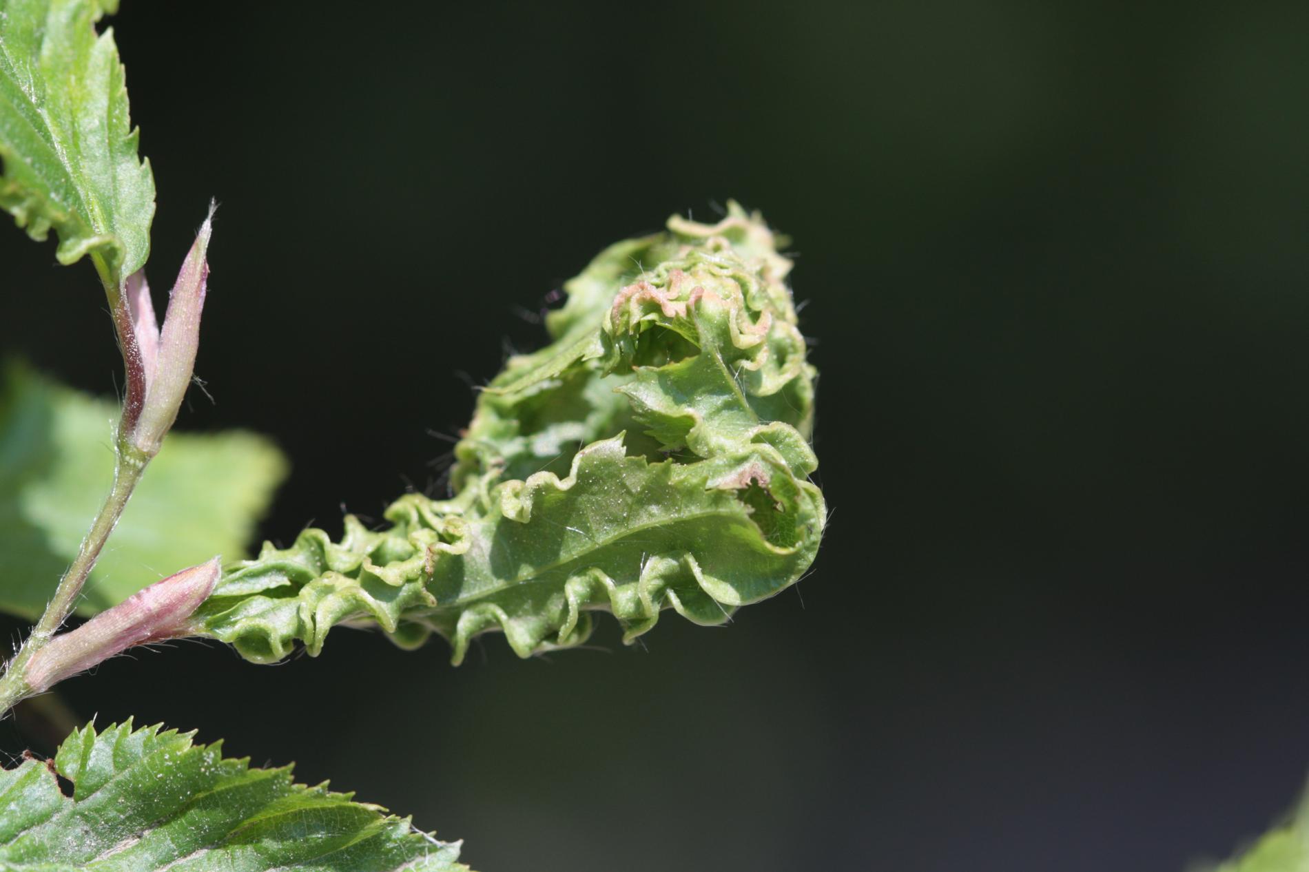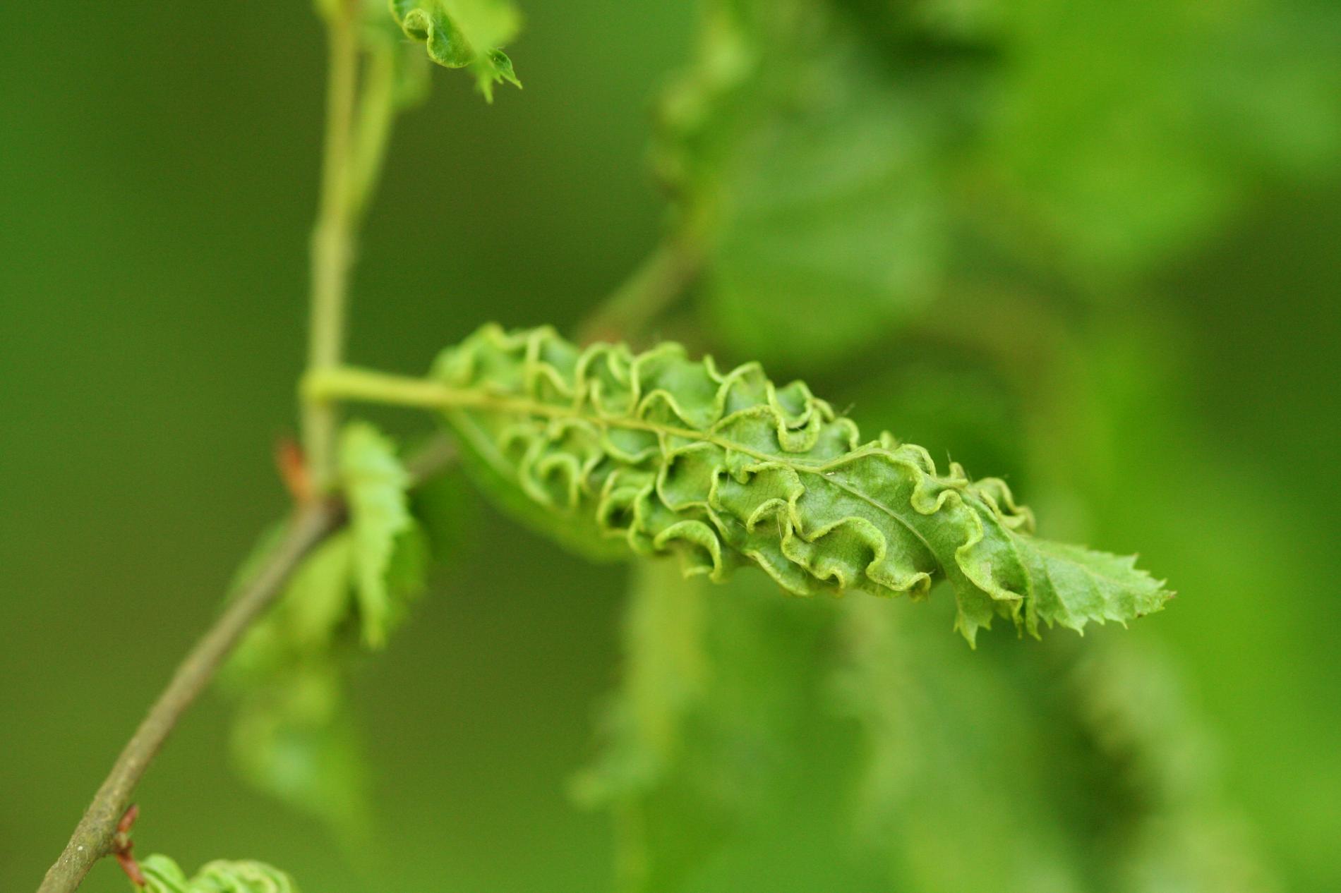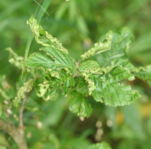 This microscopic mite lives on the lower side of leaves and around the side veins. As a result of its activity veins are deformed in a snake-shaped way and get irregularly thicker. It also causes deformations and rolling of leaves. It is commonly found particularly on younger trees. It is of no economic importance. It can reduce the aesthetic value of the tree.