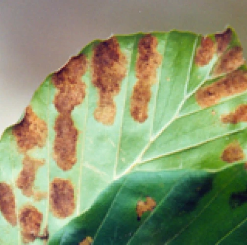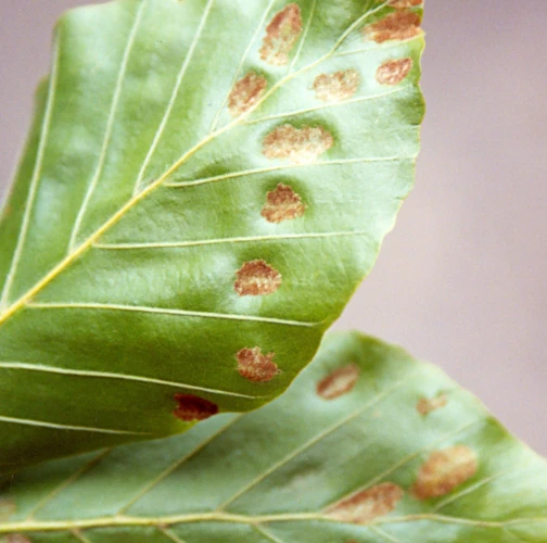Rusty coatings on the underside of the leaf.