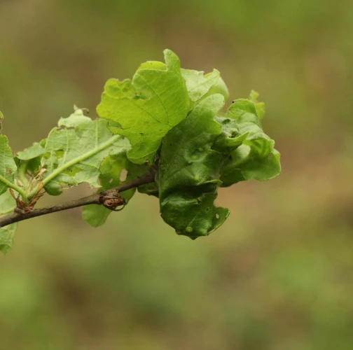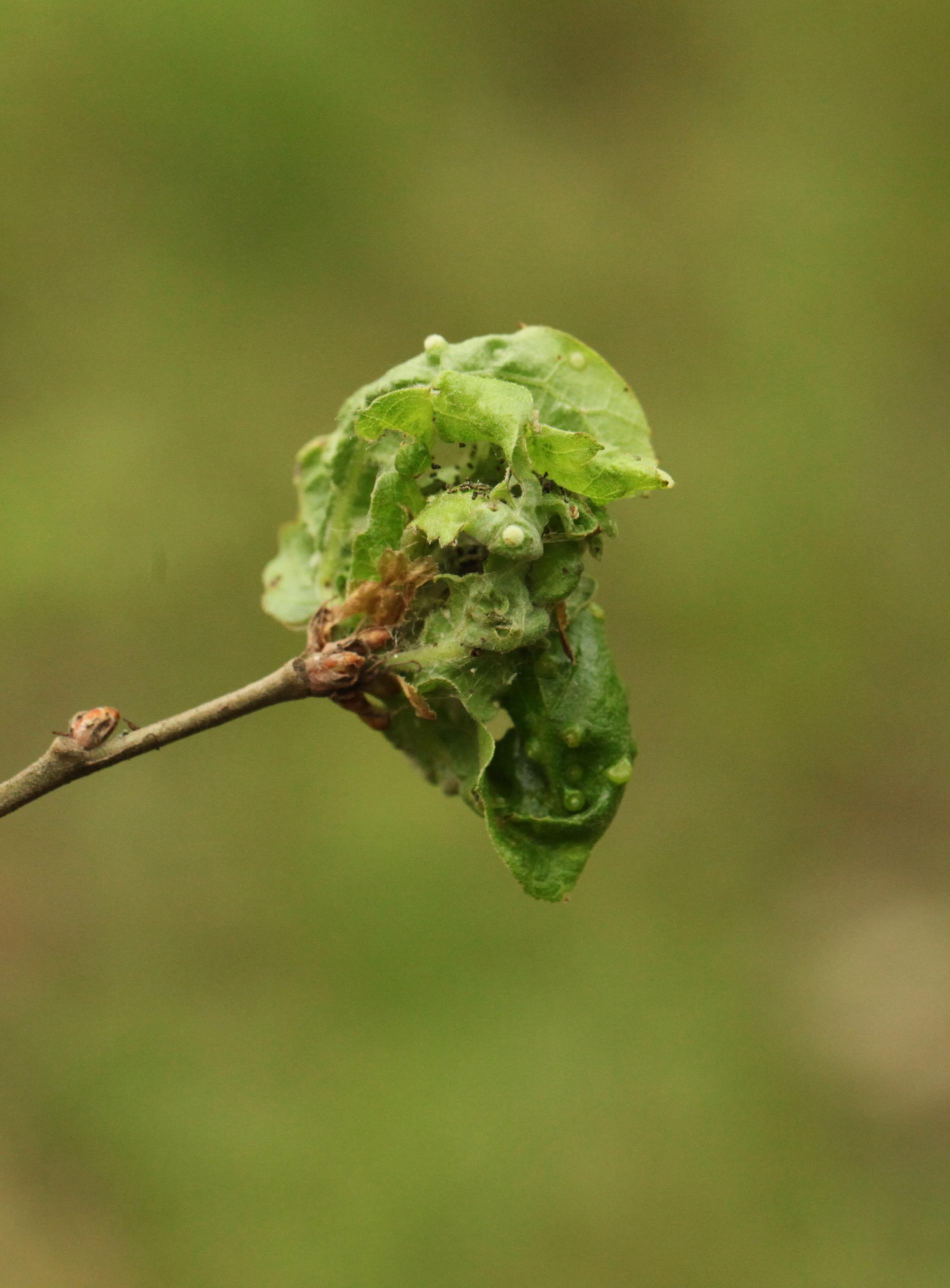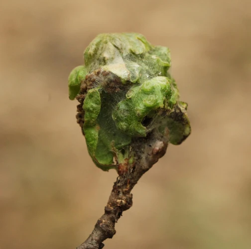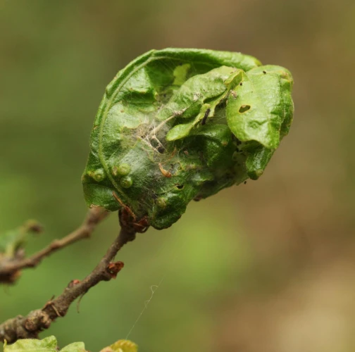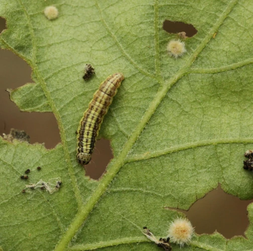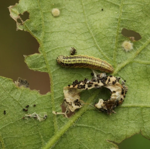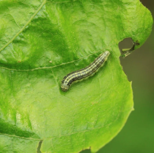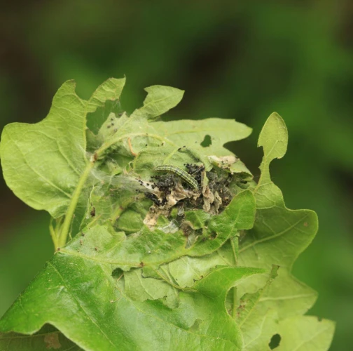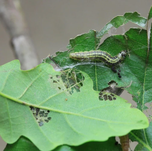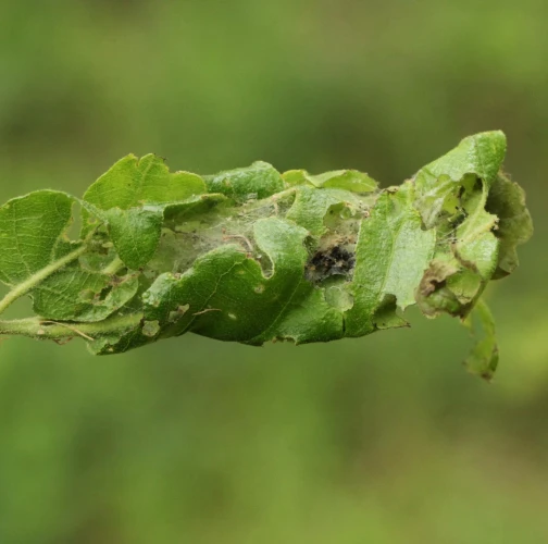 The green caterpillar lives in a spun leaf. It often spins together few leaves, where pupation takes place.