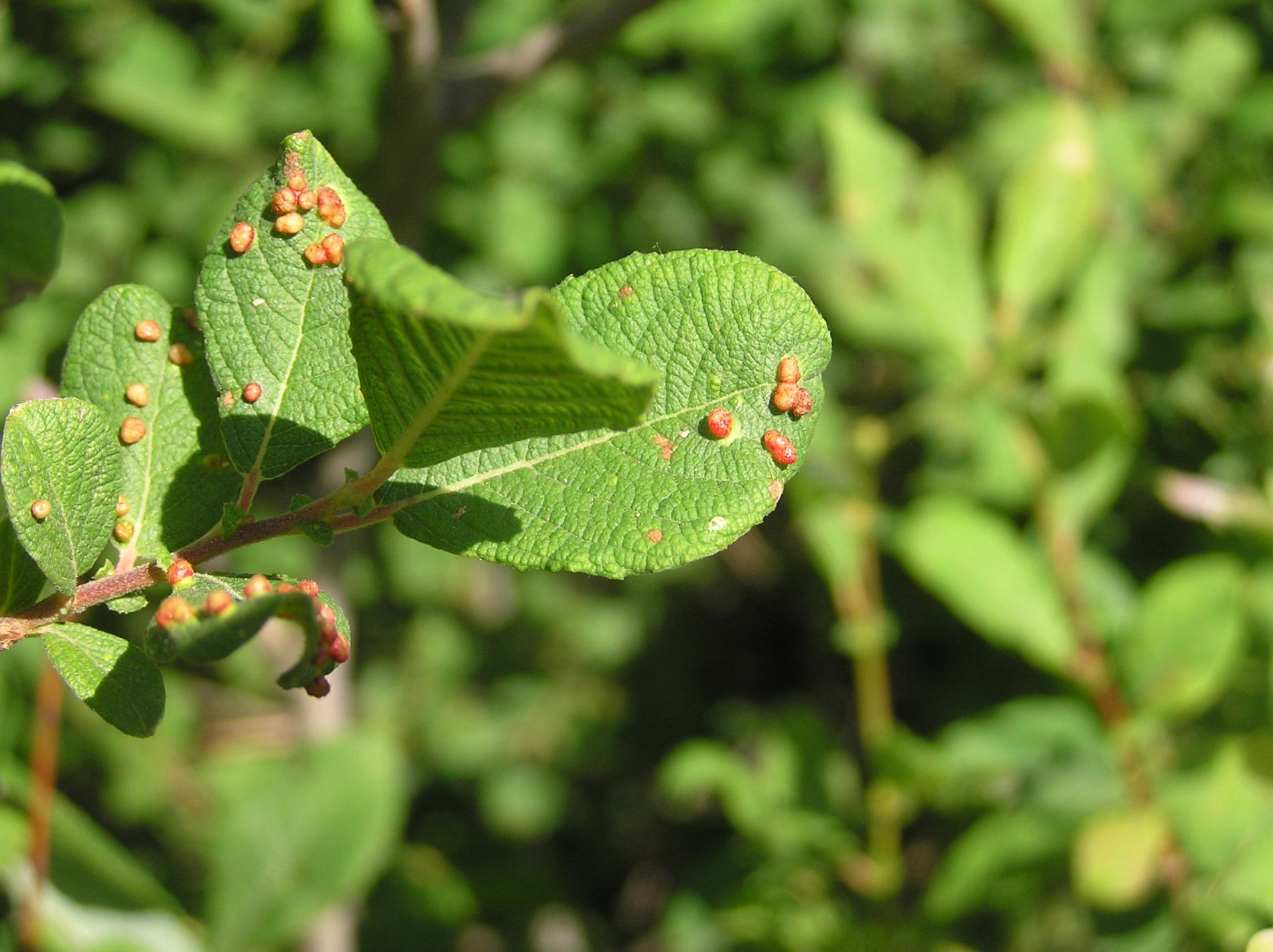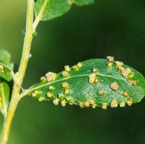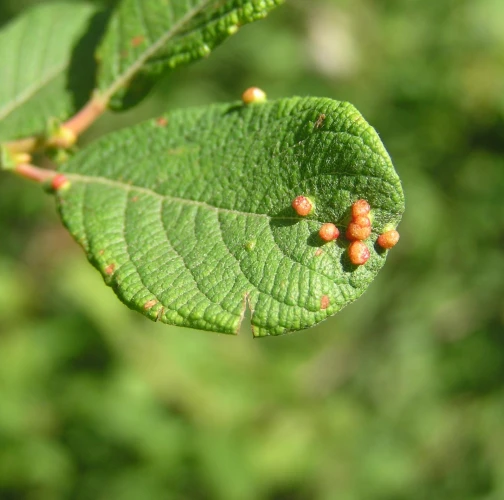 Small galls on the upper side of the leaves.