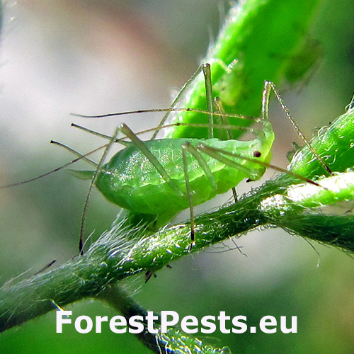 This aphid forms large colonies on the undersides of leaves, petioles, and young shoots. It feeds by piercing plant tissues and sucking out sap, which weakens the host plant. Prolonged infestations can lead to reduced vitality, distorted growth, and a decline in the overall appearance of the plant. While the damage is usually cosmetic, heavy infestations can significantly impact ornamental and cultivated plants, especially during the growing season. This aphid has several generation per year. The overwintering eggs are laid on twigs, ensuring the pest's lifecycle continues into the following year.