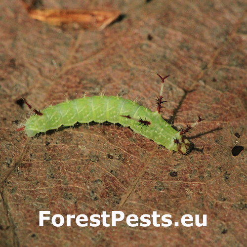 Aglia tau is an univoltine species, it has one generation per year. Adults appear from April to May (to June in altitudes of about 1500 m asl.). The active males, fly diurnally, while less active females only fly at night. Females lay eggs on trunks and branches of host trees individually or in a small clusters. Caterpillars hatch after 14 days and feeds individually. They pupate (June – August) in a loose cocoon between the leaves in the litter. The pupa overwinters. It prefers beach (Fagus sylvatica), but feeds also on other deciduous trees, oak (Quercus spp.), alder (Alnus ssp.), elm (Ulmus spp.), willow (Salix spp.), birch (Betula spp.), etc. A Palearctic species. It occurs from Spain across Europe and temperate Asia to the Japan. In Europe widely distributed, missing in extreme north and south and on the British Isles.