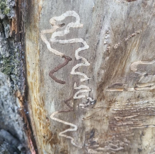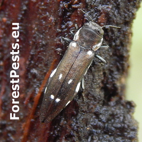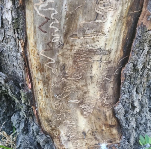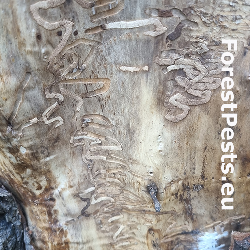 Agrilus ater is a beetle species in the family Buprestidae, commonly referred to as metallic wood-boring beetles or jewel beetles, native to Europe. It primarily infests trees like Salix (willows) and Populus (poplars). The larvae are wood borers, creating serpentine tunnels, or galleries, under the bark. Adults are found on the foliage of host trees, where they mate and lay eggs in bark crevices. The hatched larvae can cause significant damage, including disrupting nutrient flow and weakening the tree. This pest is a significant concern in forestry and horticulture due to its potential to harm valuable tree species. Agrilus ater, like A. suvorovi, poses a serious threat to poplars, especially in urban areas where these trees are commonly planted. While their biology is similar, A. ater differs by developing in parts with very thick bark, such as trunks and large branches, where the pupal chamber is located within the bark. Because of this, exit holes are not visible after removing the bark. In case of A. suvorovi, they are visible, as it pupate in the wood.