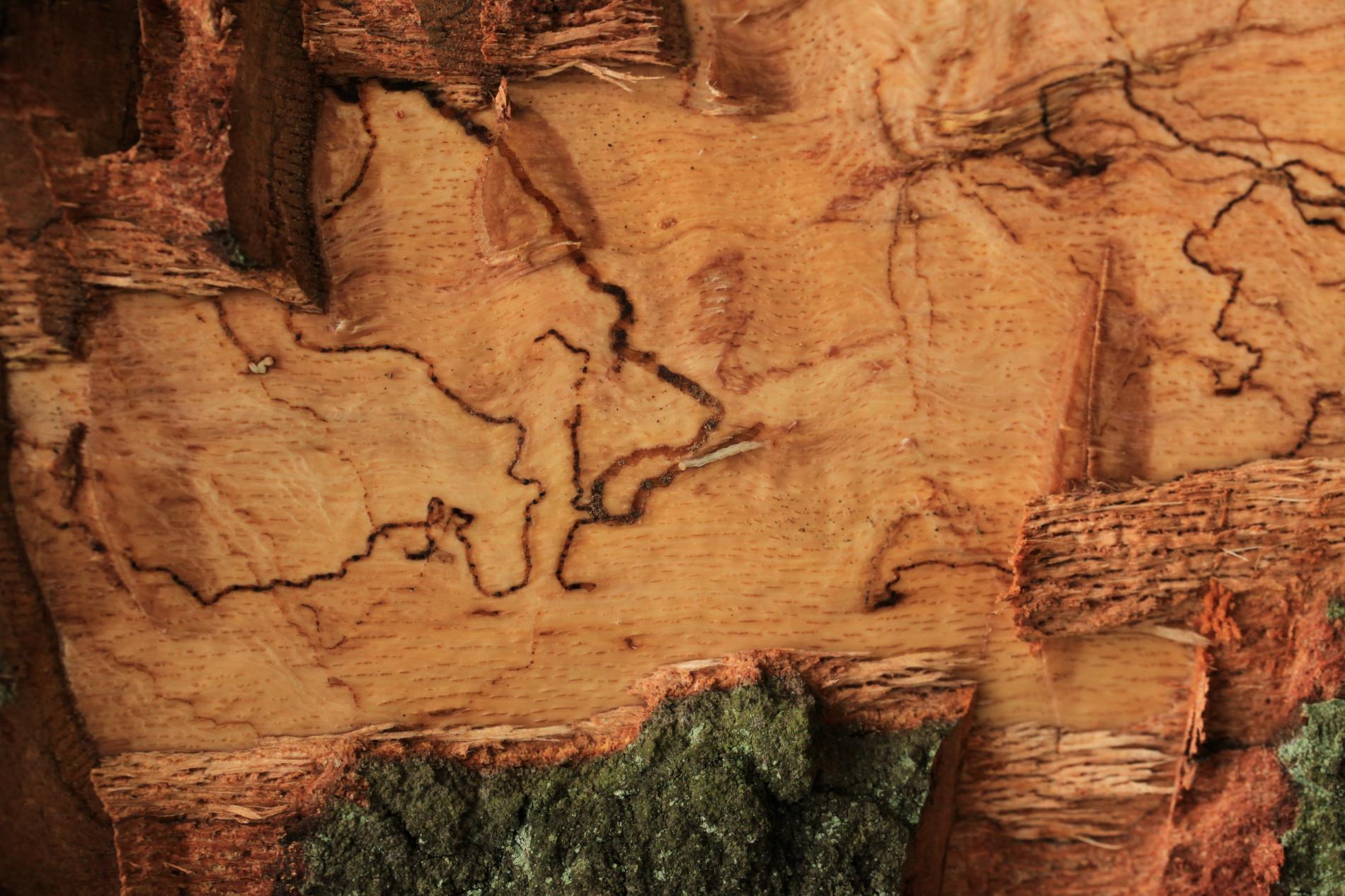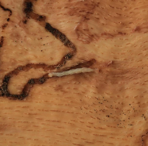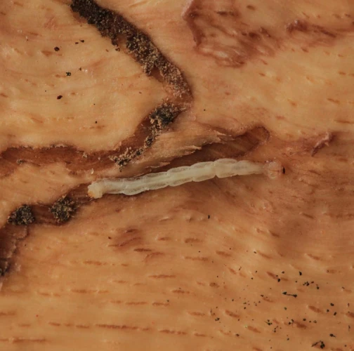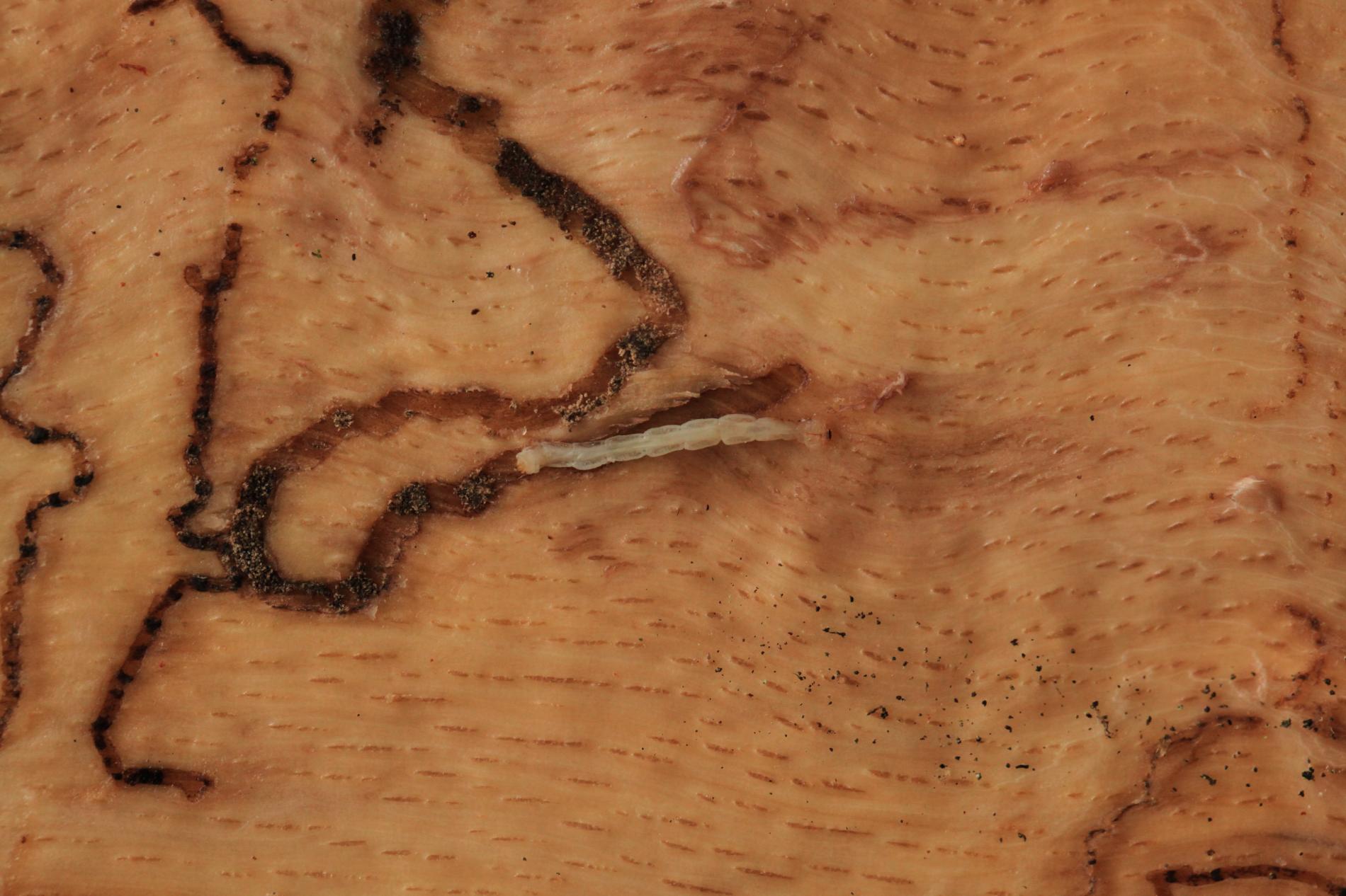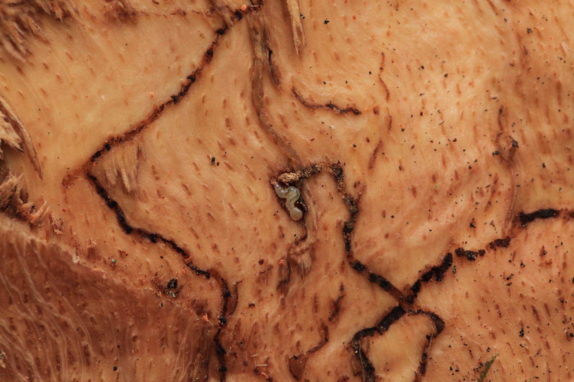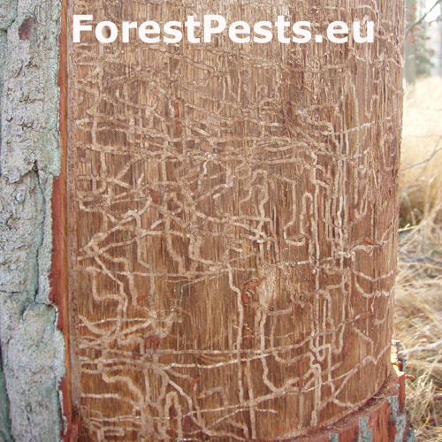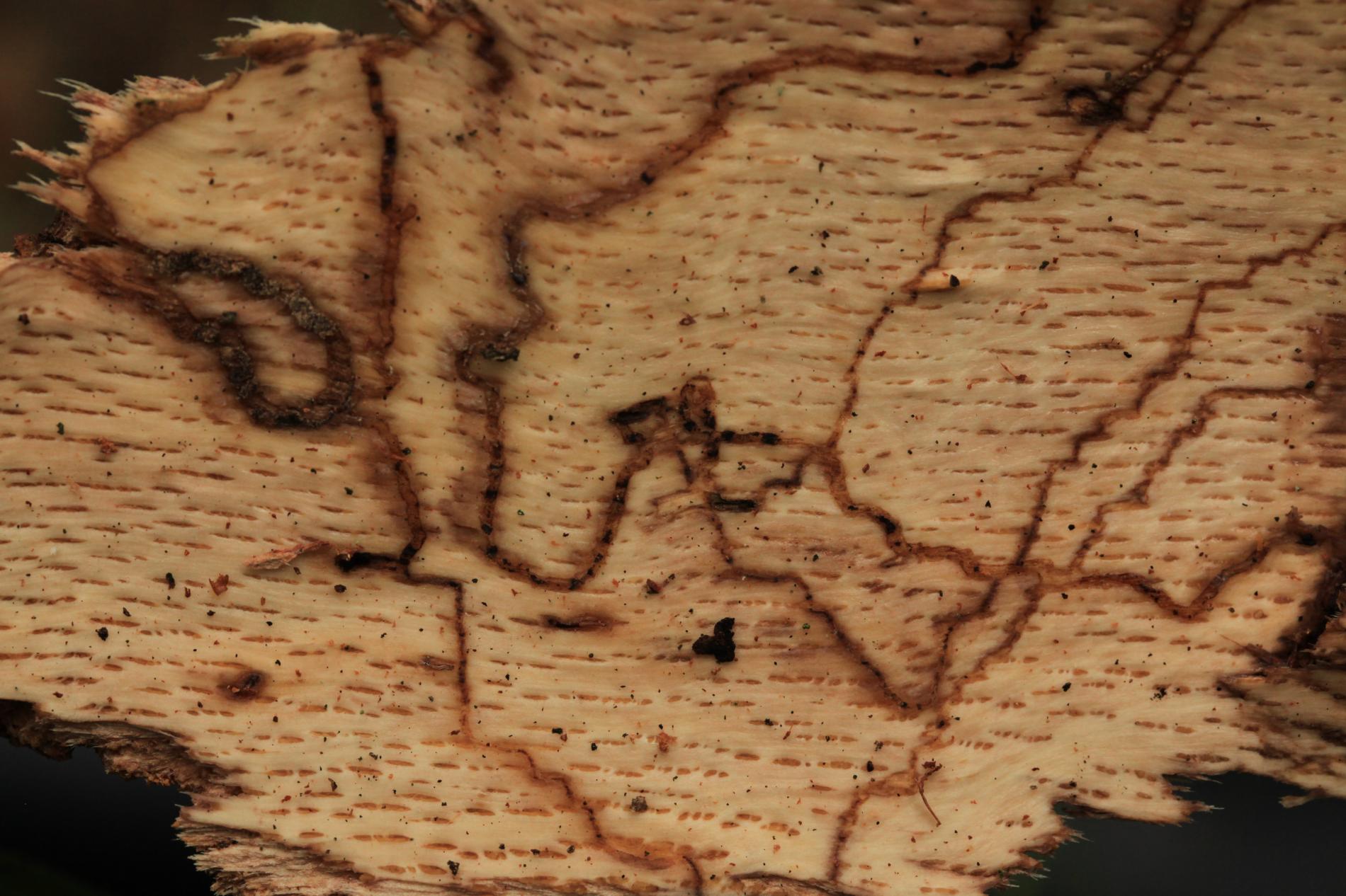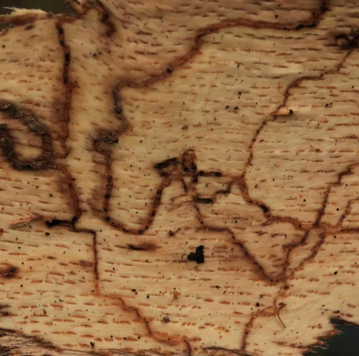 Galleries under the bark. Larvae bore into the bark where they excavate narrow galleries and pupate at their ends. Exit hole in D-shape.