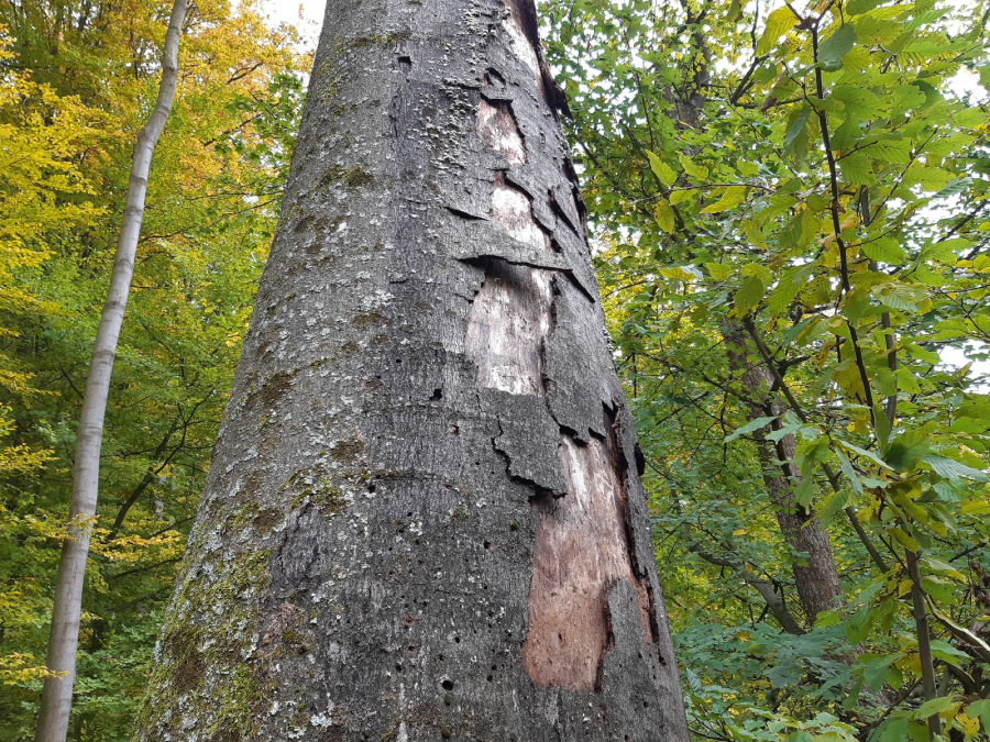 Larvae feed subcortically in branches of a larger diameter or in thin trunks. Life cycle lasts 1 to 2 years. The larvae excavates S-shaped feeding galleries under bark of branches and trunks. Apart from freshly felled trees, this secondary pest attacks also seriously weakened, languishing trees. Sufficient food sources can cause their serious outbreak mainly after hot summers and dry years. To pupate, the larva penetrates about 5-10 cm into wood. Adults fly from May to August, when they spend time sitting on leaves of host plants. The species is broadly polyphagous on deciduous trees but preferring Salix caprea, Fagus spp. and Betula spp. The infected stems can be identified by the dark spots on the bark.