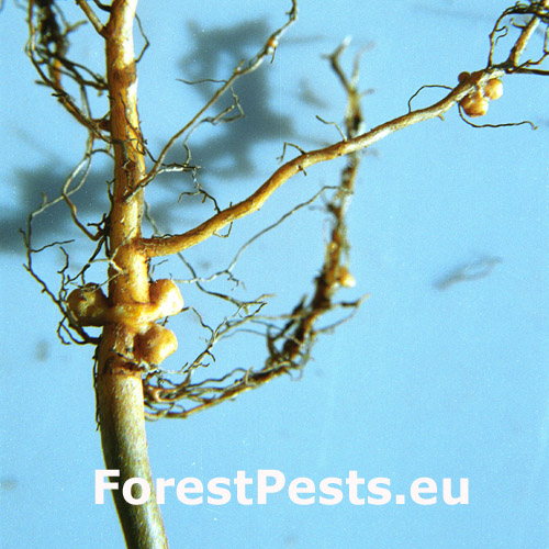 Tumor formed on the root, stem or branch of the plant, depending on original wound site. The size and shape of the tumor depends on the host plant.