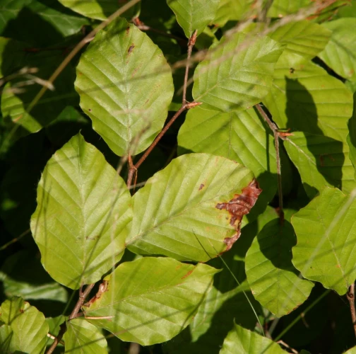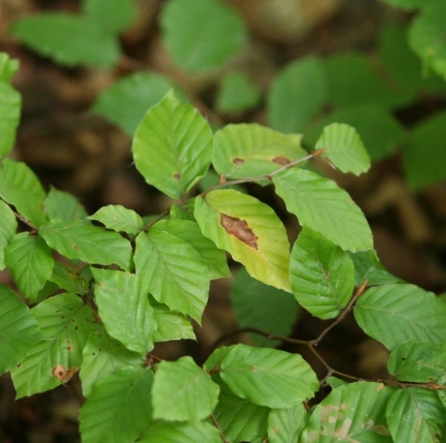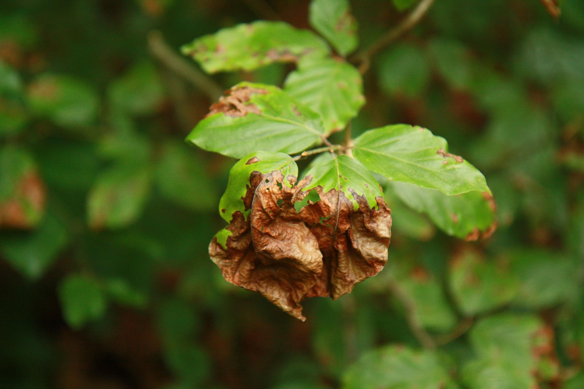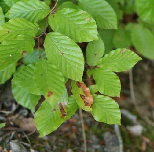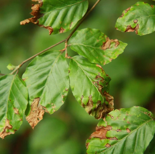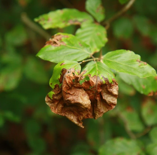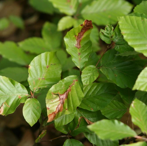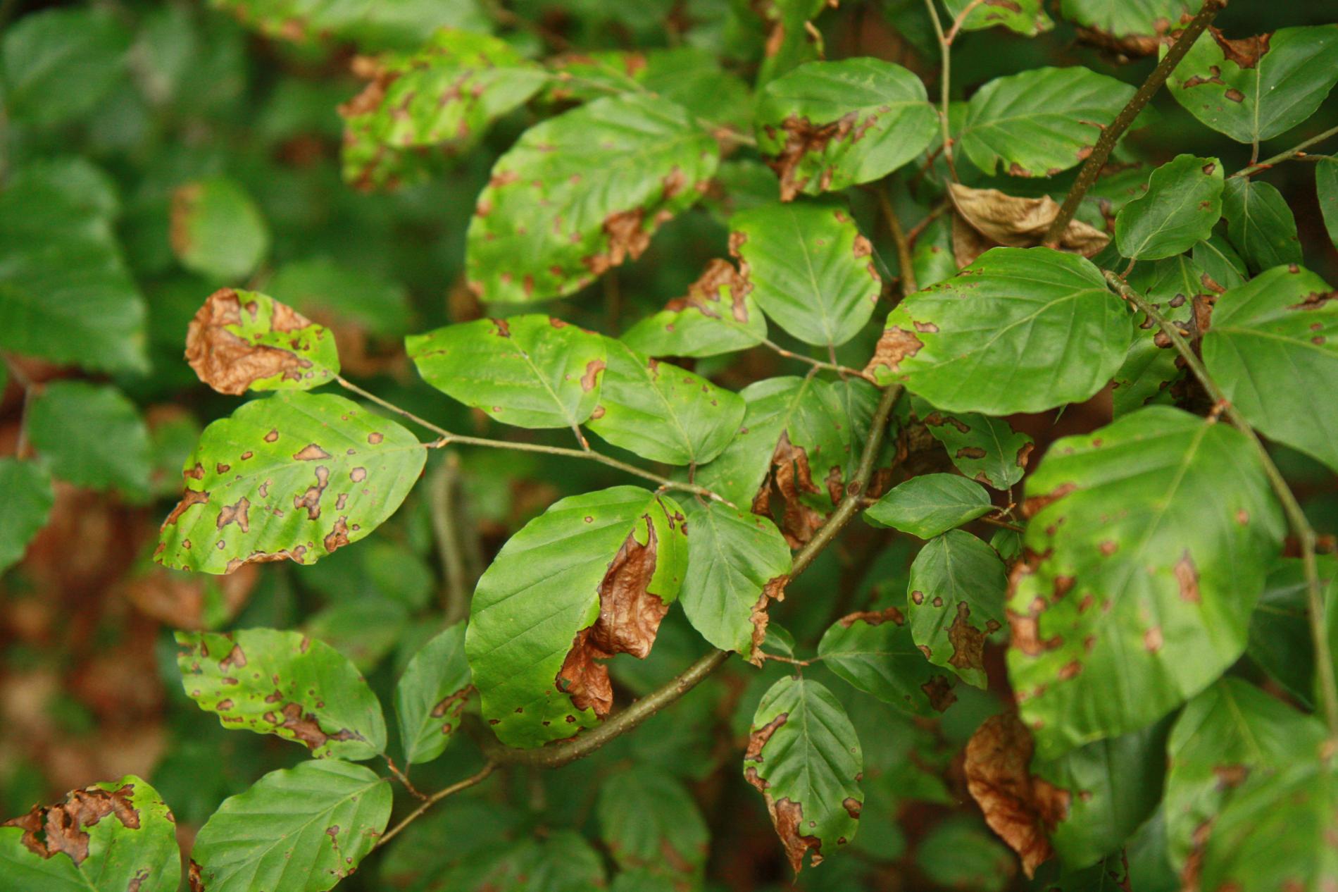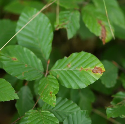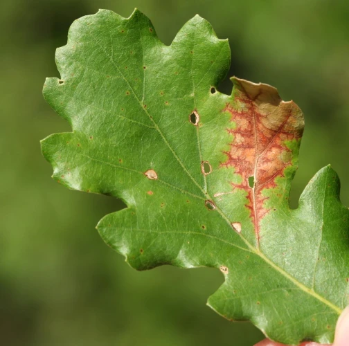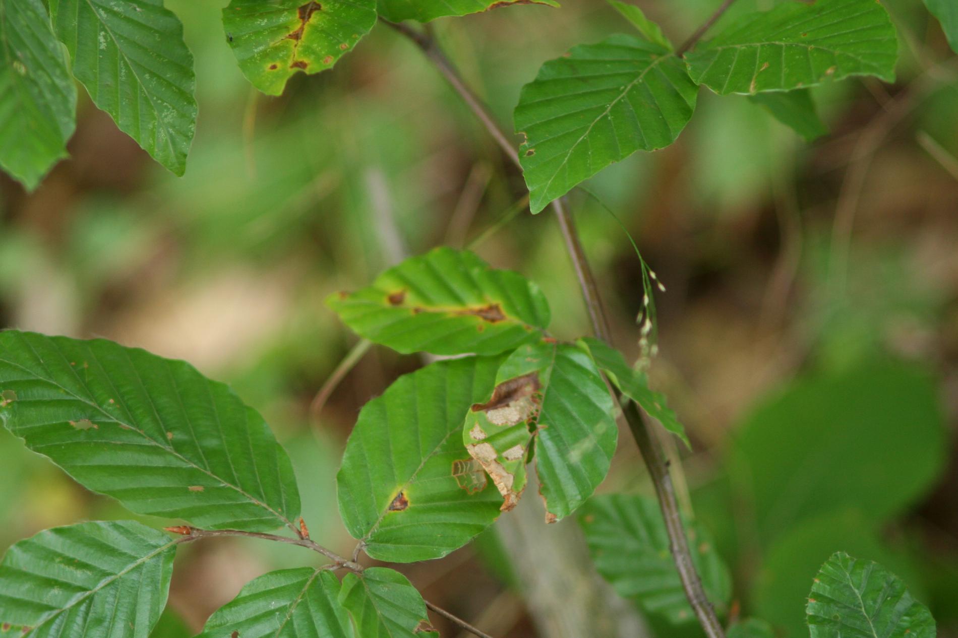 Typical symptoms of the infection are brown spots along the main vein of the leaf blade. Another symptom are brown spots on the leaf blade basis and most rarely occurs the blackening of leaf stems. The fungus is an endophyte living in the green parts of leaves and not causing any damage. In case of the weakening of leaves or the weakening of whole trees e.g. by drought, gall-creating insects or other fungi, there occurs a change in a way of fungus life and it becomes a pathogen. It results in the leaf necrosis, however, by this self-destructing defence mechanism it prevents from  the forming of insect galls.