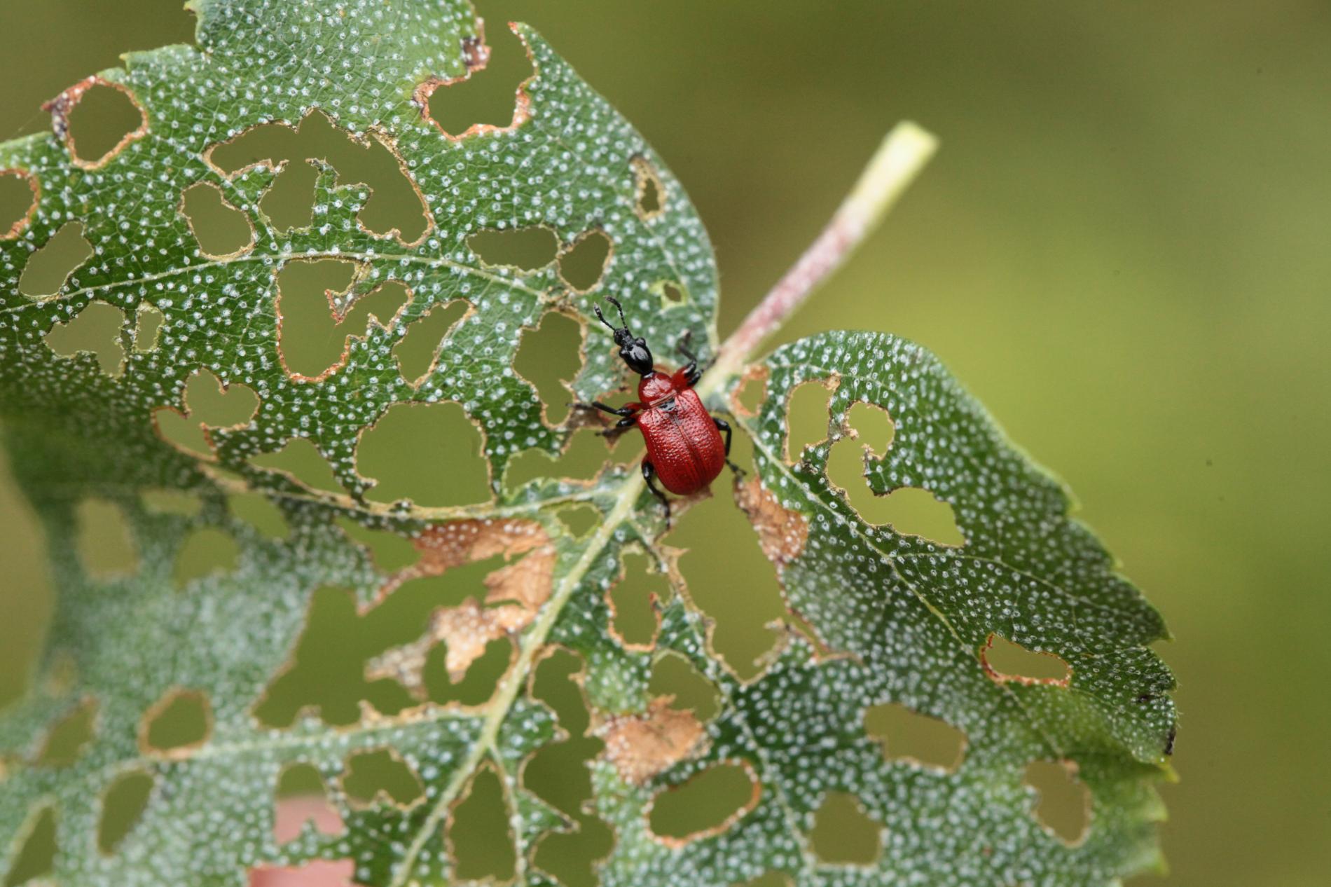 Cigar-like leaf roll. Can cause rather esthetic damage on ornamental trees, but its physiological impact is negligible.