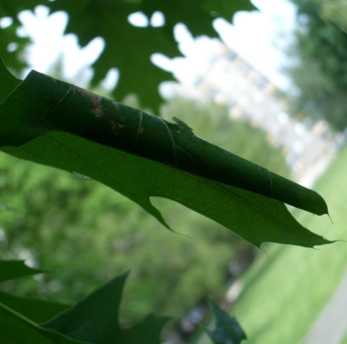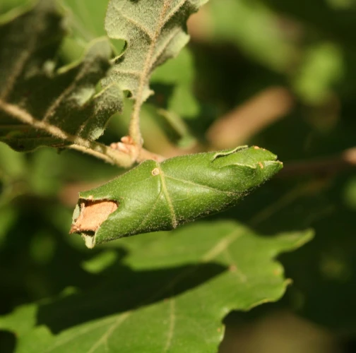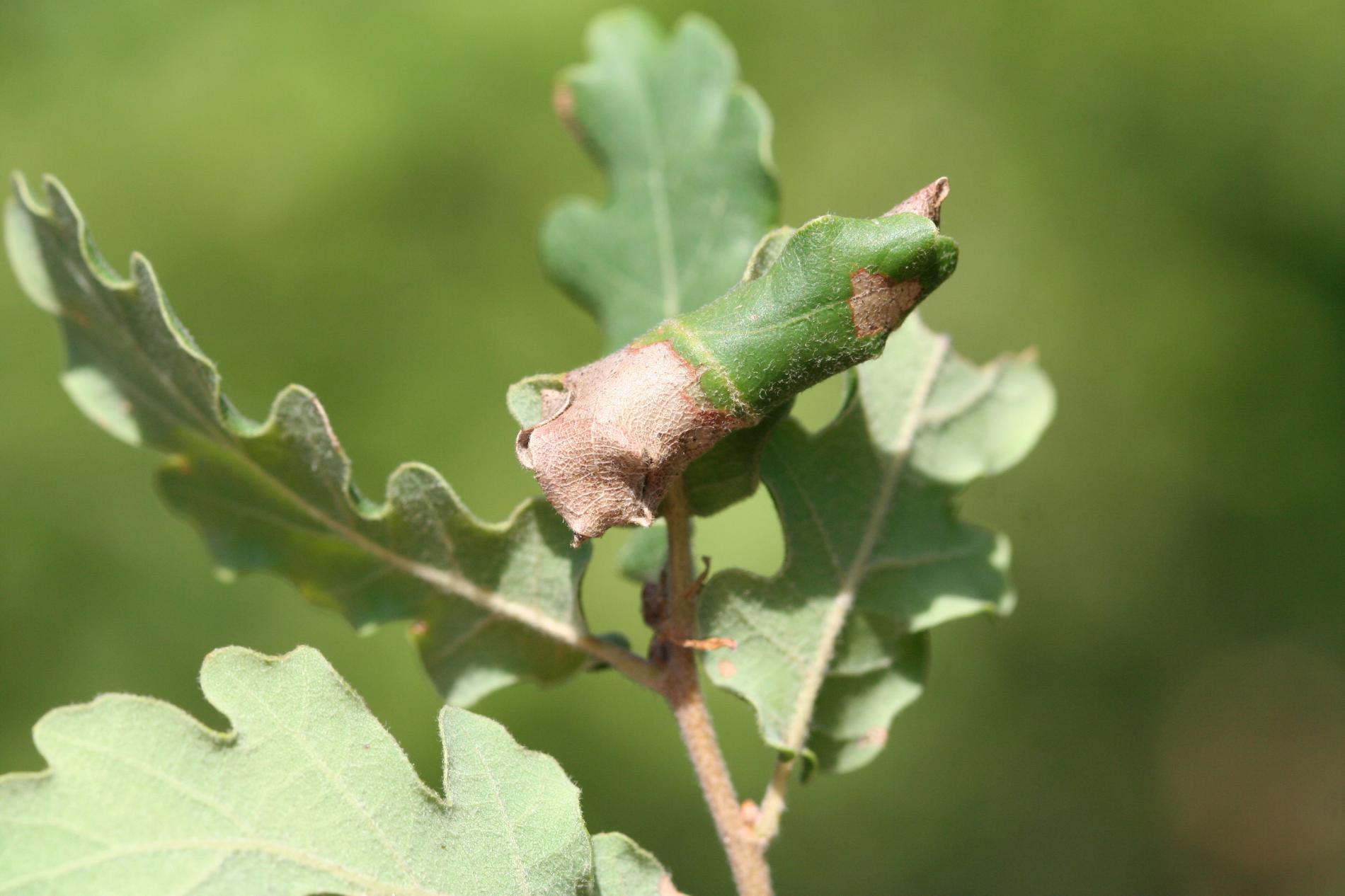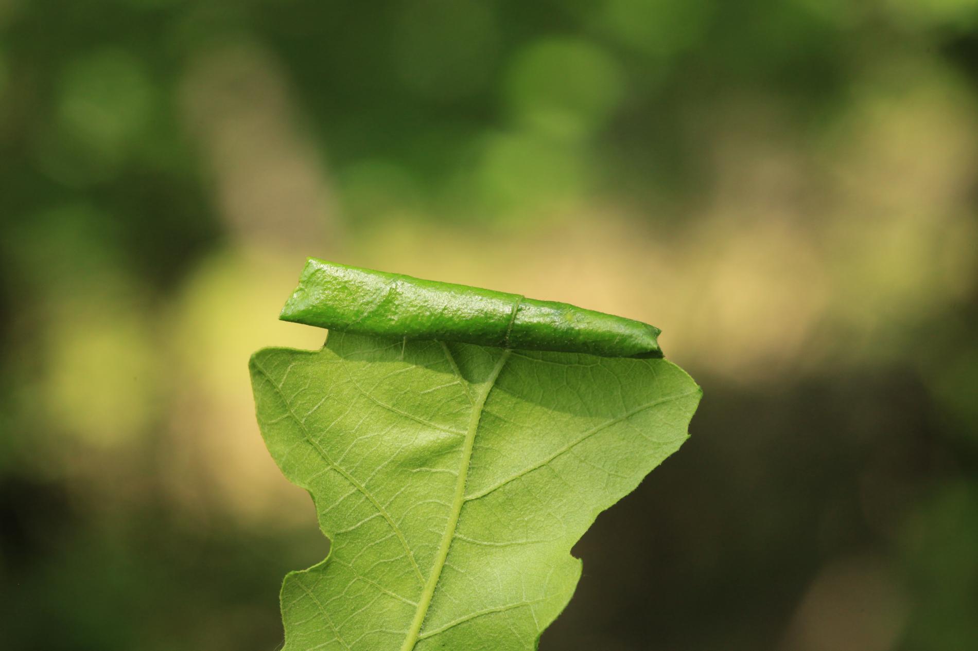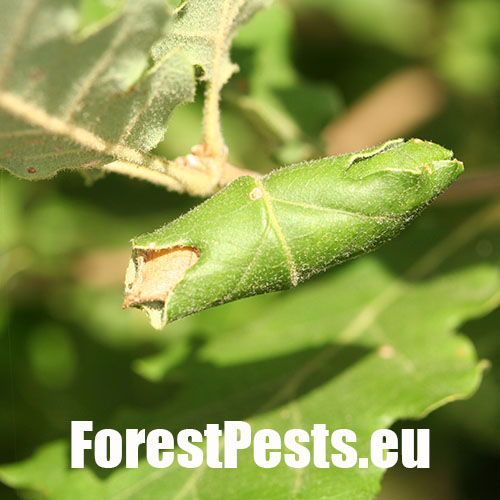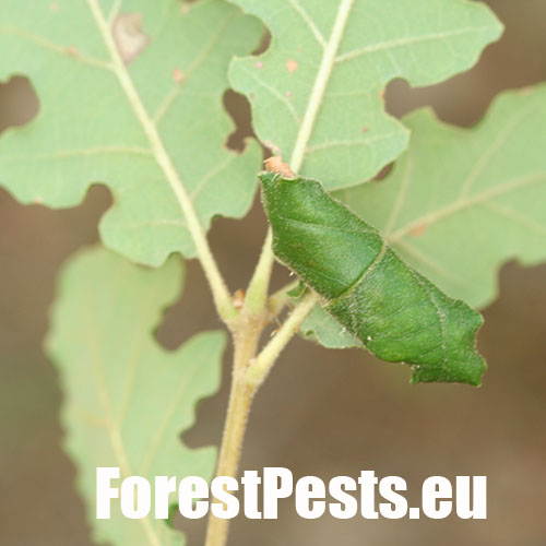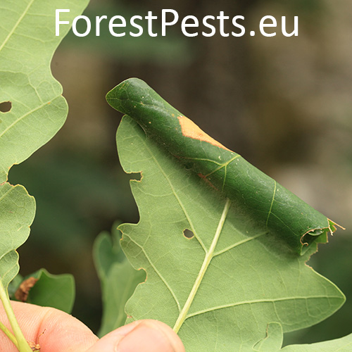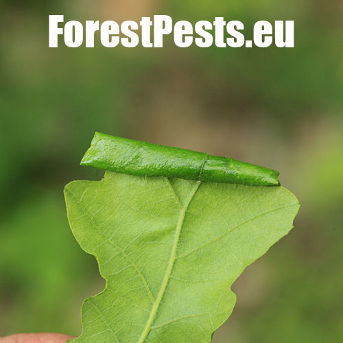Oak leaves rolling is caused by larvae of species. Inside the rolled leaf lives 1.5-2.0 cm long larva.