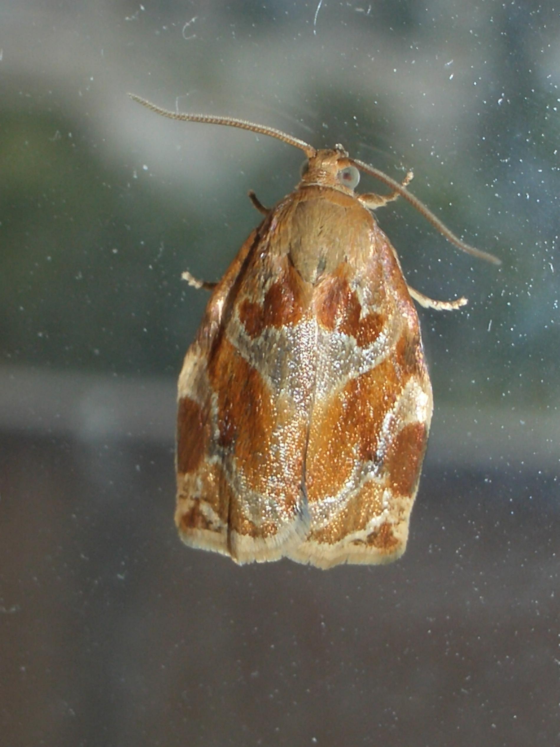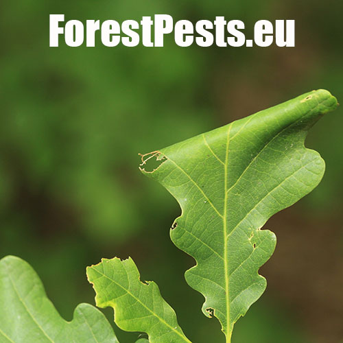 Archips xylosteana L. is a tiny brownish yellow moth with about 2-2.5 cm wingspan. Oak leaves rolling is caused by larvae of species. Inside the rolled leaf lives 1.5-2.0 cm long larva. It commonly occurs along with other species such as green oak roller, Tortrix viridana, or the oak roller, Aleimma loeflingiana. Leaf-rollers generally weaken oak tree stands, especially in dry sites and floodplains. Under favourable conditions an outbreak and even defoliation can occur.
