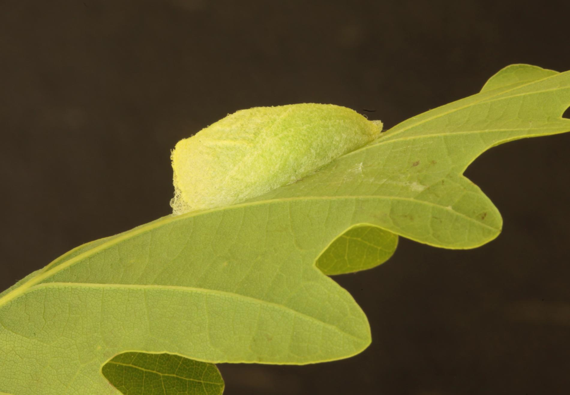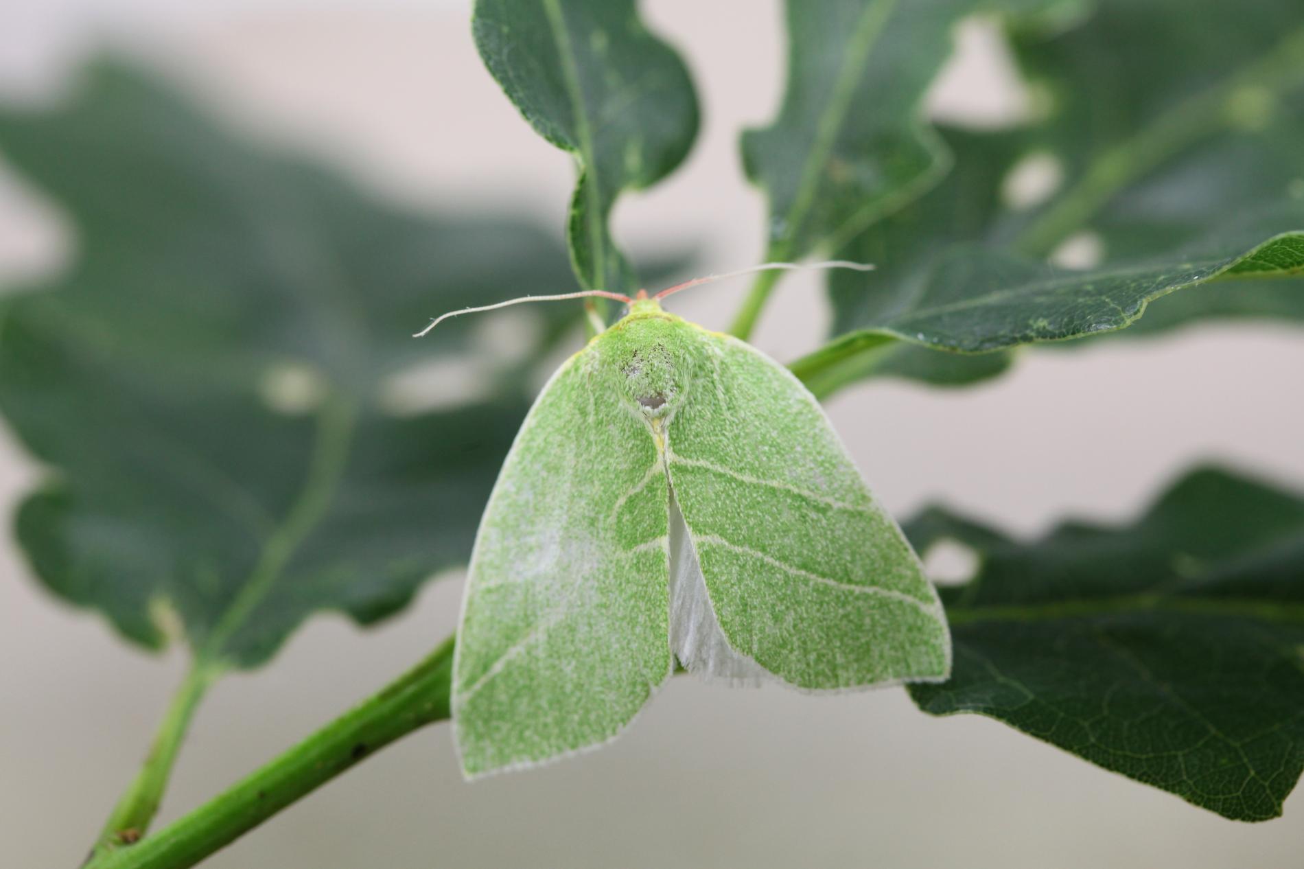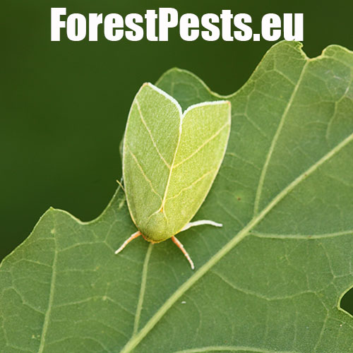 The caterpillars feed on leaves of oak species from July to May, and overwinter on branches of their host plant. The green larvae turn their colouration to brown in autumn, before hibernation. Green-coloured adults fly from May to July. The species occurs in oak woods and forests.